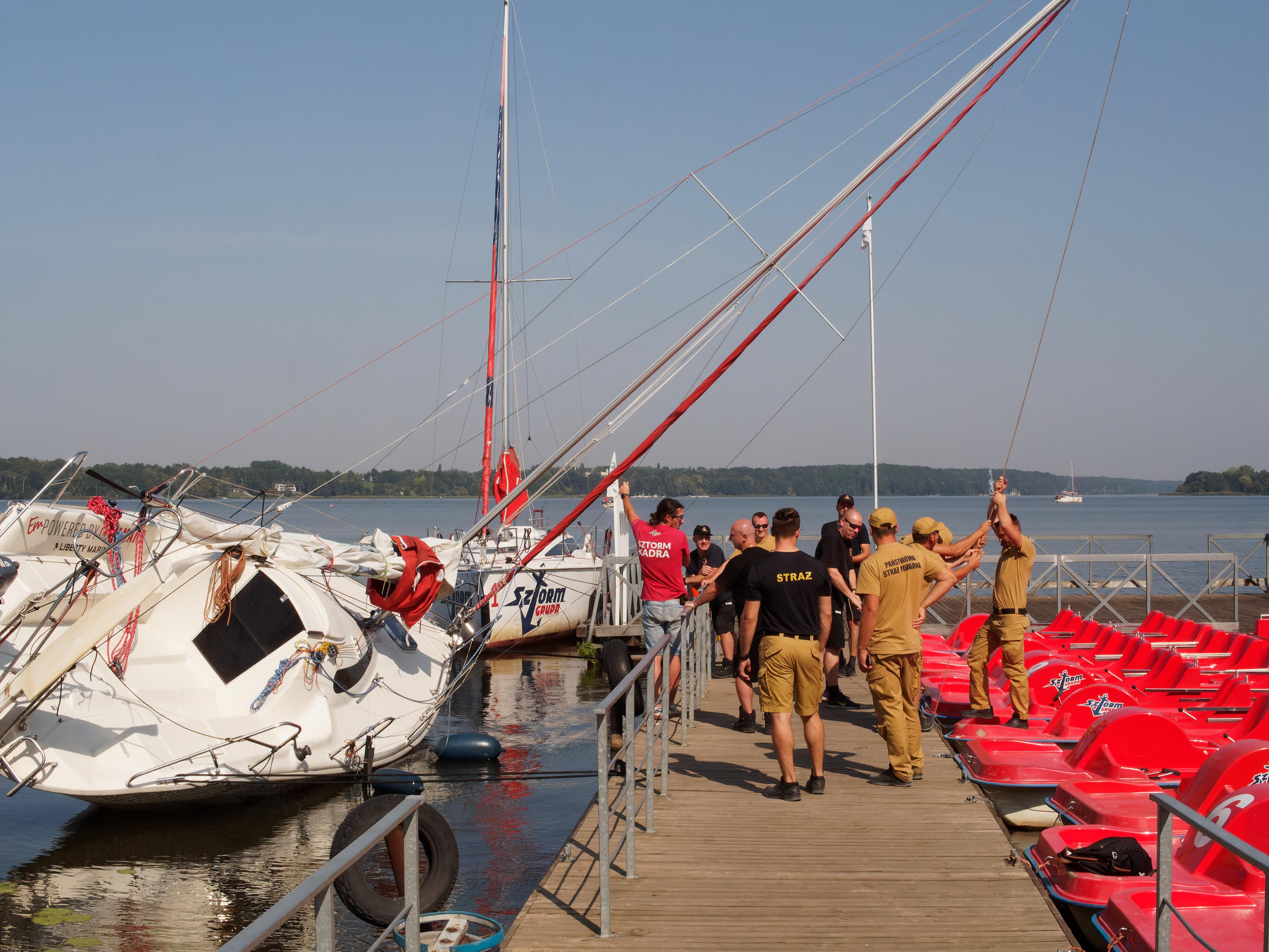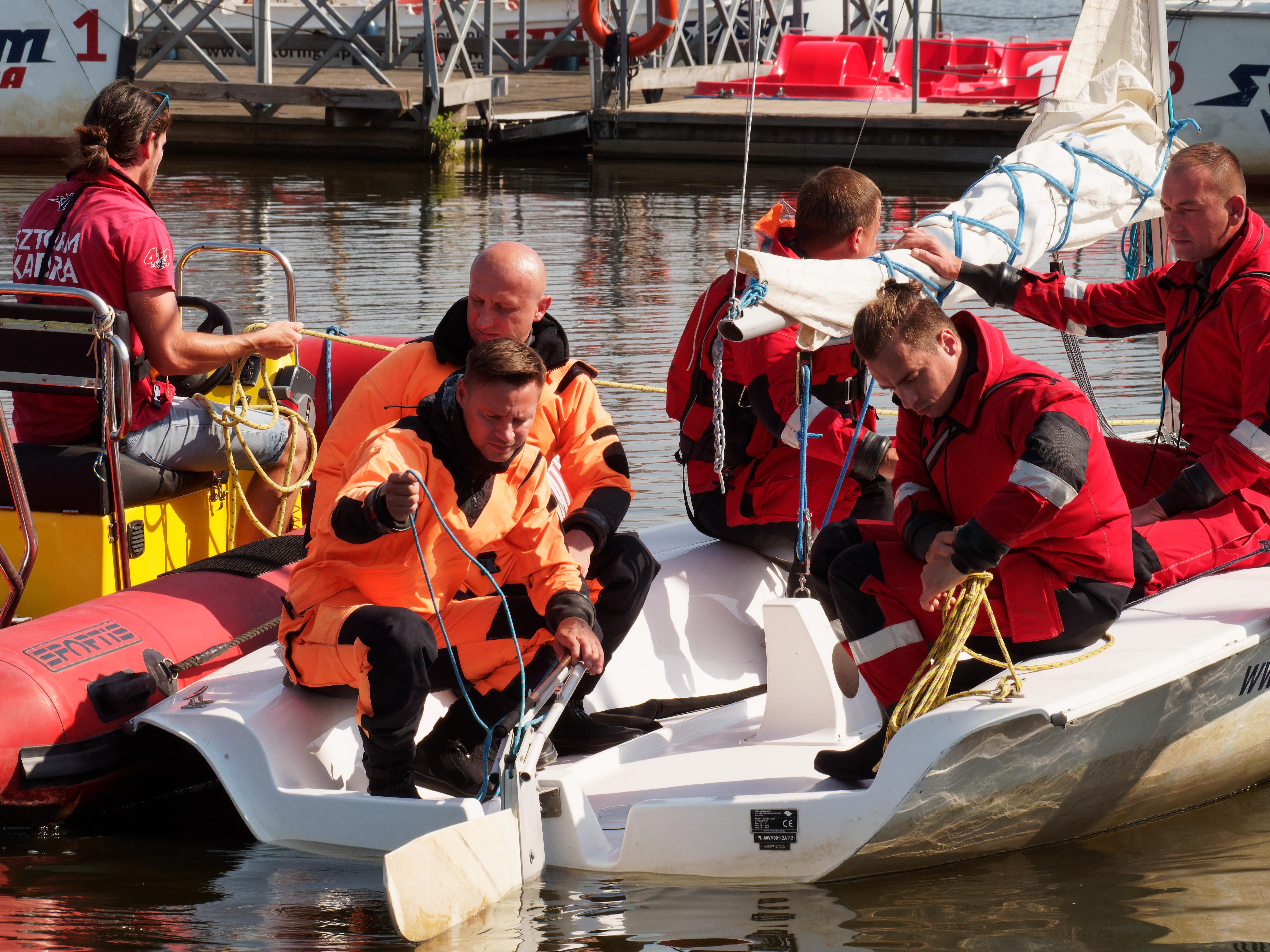 W dniach 2-4 września 2024 roku strażacy z JRG 1 uczestniczyli w ćwiczeniach zorganizowanych na terenie przystani Marina Diana nad Jeziorem Zegrzyńskim. Tematem szkolenia było ratownictwo wodne związane z jachtami żaglowymi, a zajęcia prowadzone były przez wykwalifikowaną kadrę instruktorską żeglarstwa ze Sztorm Grupy.