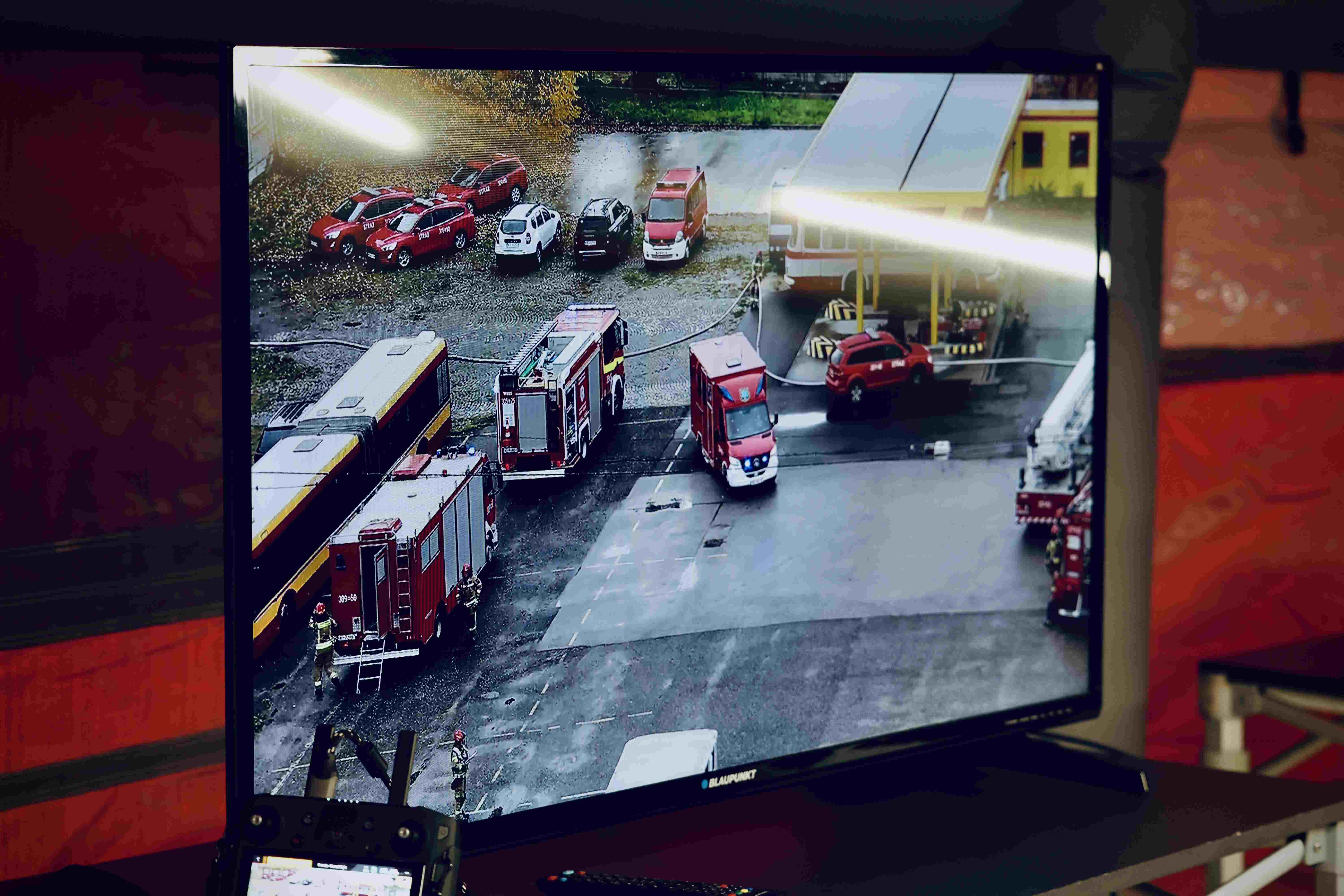 W trakcie prowadzenia działań ratowniczych w części socjalnej pożar rozprzestrzenia się na coraz większą część hali stwarzając zagrożenie dla znajdujących się w niej pozostałych autobusów. Dalsze działania polegają na podaniu prądów wody w obronie i natarciu na palącą się halę oraz na zapewnieniu przeciwpożarowego zaopatrzenia w wodę metodą przepompowywania.”