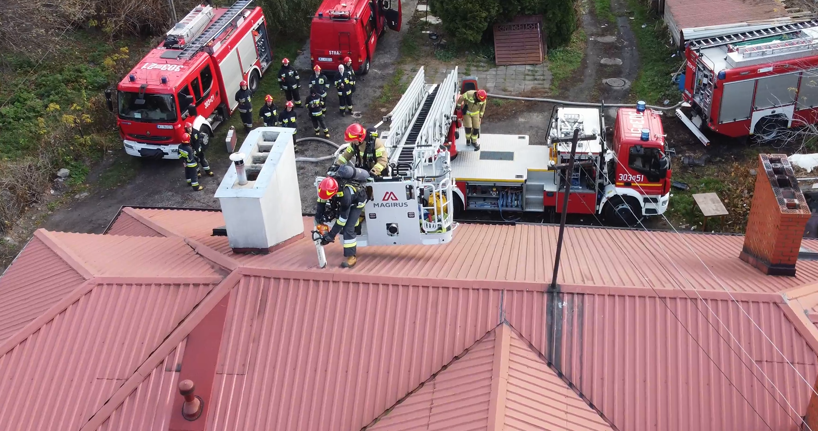 W dniach 27-29.10 zmiany służbowe JRG-3 realizowały ćwiczenia z ogólnie pojętej tematyki gaszenia pożarów wewnętrznych. Zakres ćwiczenia obejmował: techniki otwierania okien, techniki i metody prowadzenia przecinek dachowych, metody asekuracji ratowników podczas pracy na dachu, techniki pracy z lancami dachowymi, metody prowadzenia wentylacji, taktyka prowadzenia działań w piwnicach, praca w strefie w asekuracji autorolek, ewidencja pracy w aparatach OUO. Ćwiczenia w części nadziemnej budynku prowadzono w warunkach zadymienia scenicznego, scenariusze działań gaśniczych w piwnicy realizowano w warunkach pożaru kontrolowanego. Ćwiczenia na obiekcie zrealizowano dzięki uprzejmości firmy Bouygues Immobilier Polska - właściciela terenu.