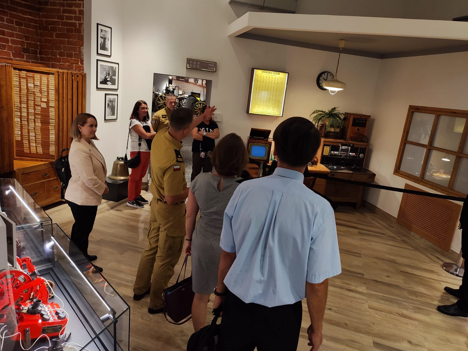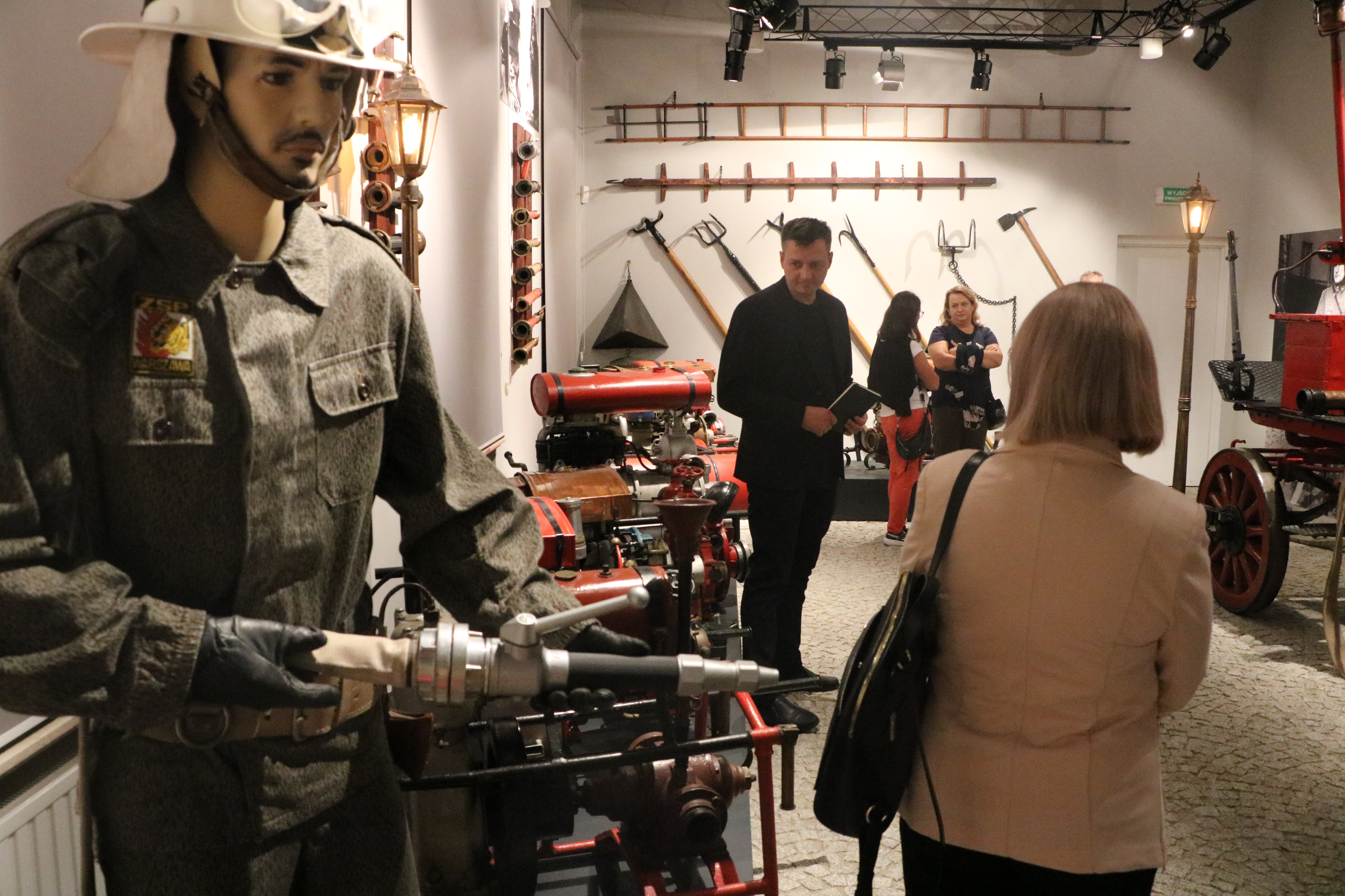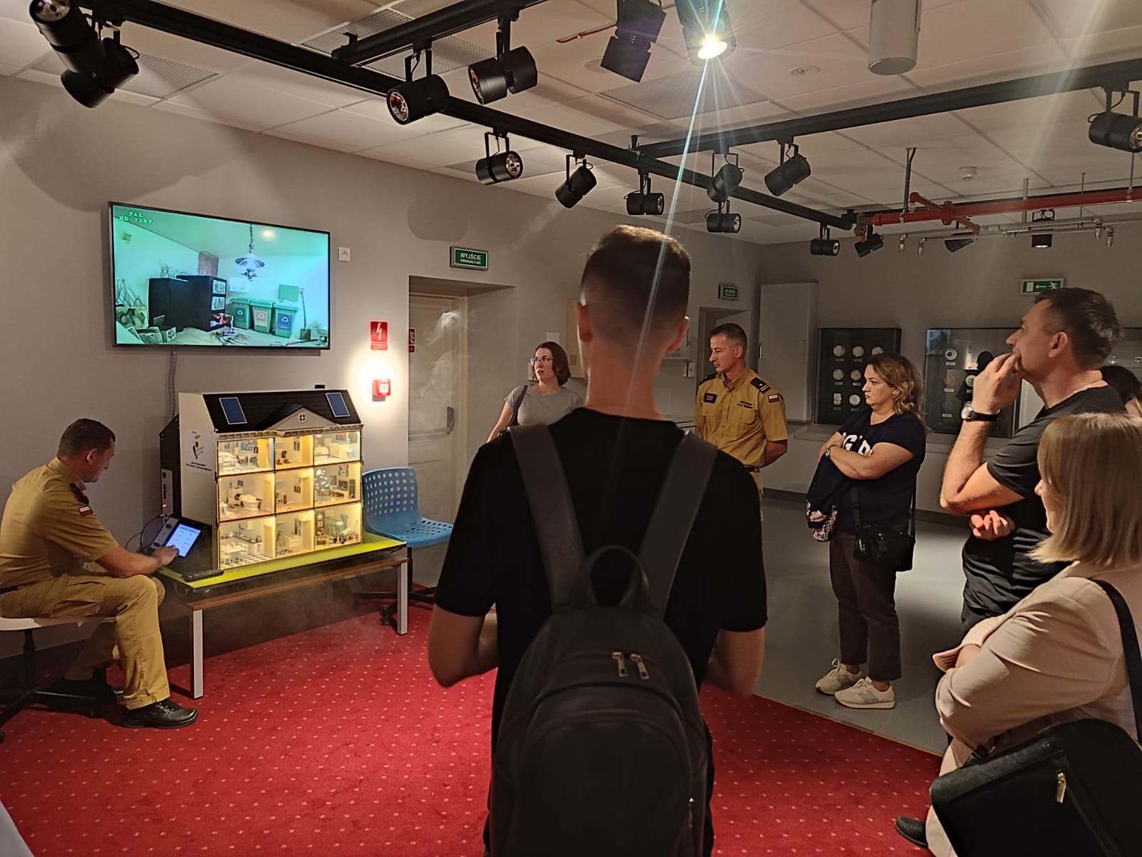 Zastępca Naczelnika Wydziału Organizacyjnego mł. bryg. Artur Laudy opisał sposób funkcjonowania obiektu. Przedstawił zastosowane rozwiązania techniczne oraz po krótce zaprezentował możliwości wystawy, która jest tak chętnie oglądana i podziwiana przez wszystkich naszych gości.