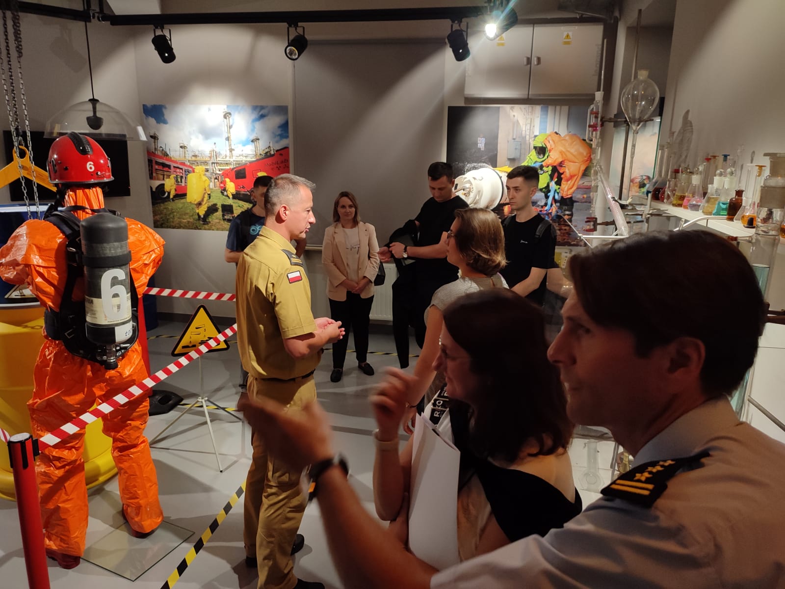 W dniu 18 września 2023 r. w ramach realizacji projektu pt. „Wsparcie profilaktyki społecznej w Mołdawii poprzez podnoszenie świadomości społeczeństwa z wykorzystaniem sal edukacyjnych i kampanii społecznych”, CEiHWSP gościło delegację ekspertów Generalnego Inspektoratu ds. Sytuacji Nadzwyczajnych Republiki Mołdawii. Celem spotkania była prezentacja doświadczeń Państwowej Straży pożarnej w zakresie podnoszenia świadomości zagrożeń pożarowych, w tym działania sal edukacyjnych.