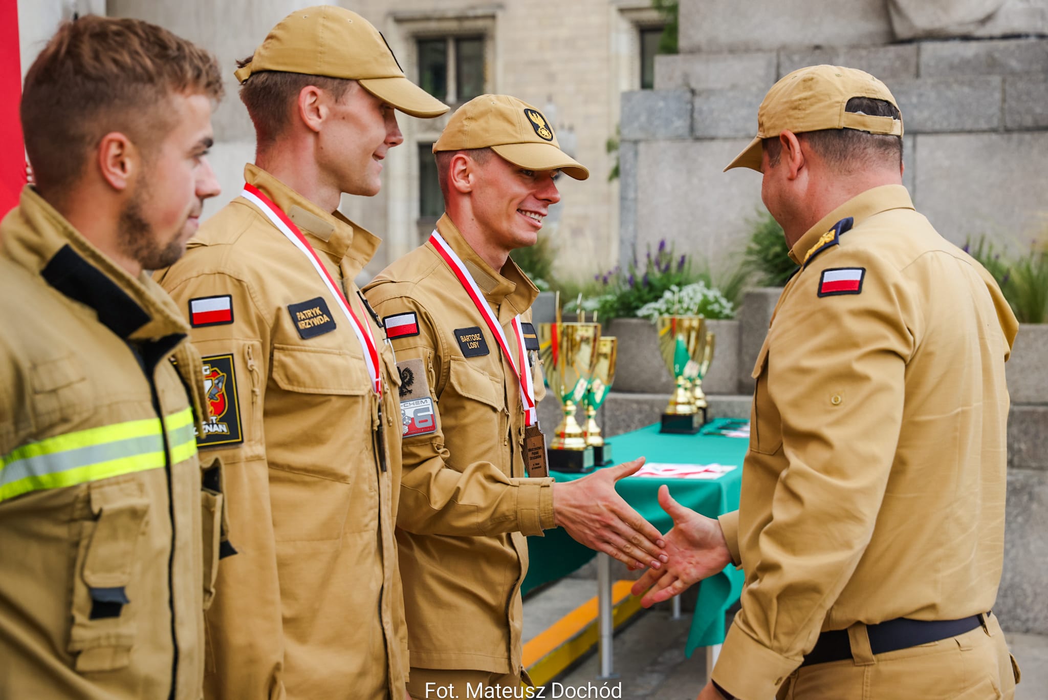 Medale, puchary oraz dyplomy wręczyli Mazowiecki Komendant Wojewódzki PSP nadbryg. Artur Gonera i Komendant Miejski PSP m.st. Warszawy st. bryg. Sławomir Sierpatowski.