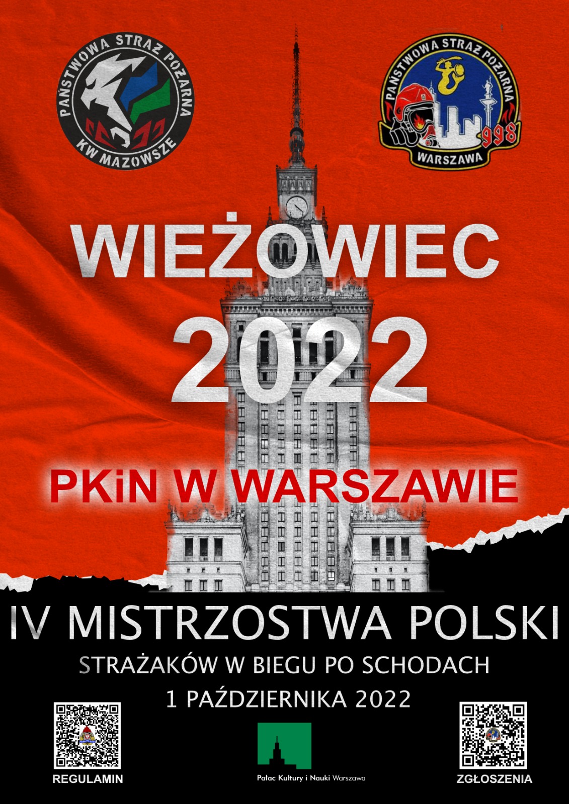 W dniu 1 października 2022 roku, w Pałacu Kultury i Nauki w Warszawie, odbyły się IV Mistrzostwa Polski Strażaków w Biegu po Schodach „WIEŻOWIEC 2022”. Impreza ta została zapoczątkowana w 2017 roku, jednak ze względu na pandemię koronawirusa poprzednie Mistrzostwa odbyły się w 2019 roku. Wydarzenie, które ściągnęło do Warszawy pasjonatów sportowych wrażeń, zostało zorganizowane we współpracy Komendy Wojewódzkiej PSP w Warszawie z Komendą Główną PSP, Komendą Miejską PSP m.st. Warszawy oraz Biurem Bezpieczeństwa i Zarządzania Kryzysowego Urzędu m.st. Warszawy. W tym roku swój udział w mistrzostwach zadeklarowało, rekordowo, aż 330 uczestników tj. 165 drużyn z terenu całego kraju. Najlepszy zawodnik w biegu na 30. piętro Pałacu Kultury i Nauki osiągnął imponujący czas 5:01 minut.
