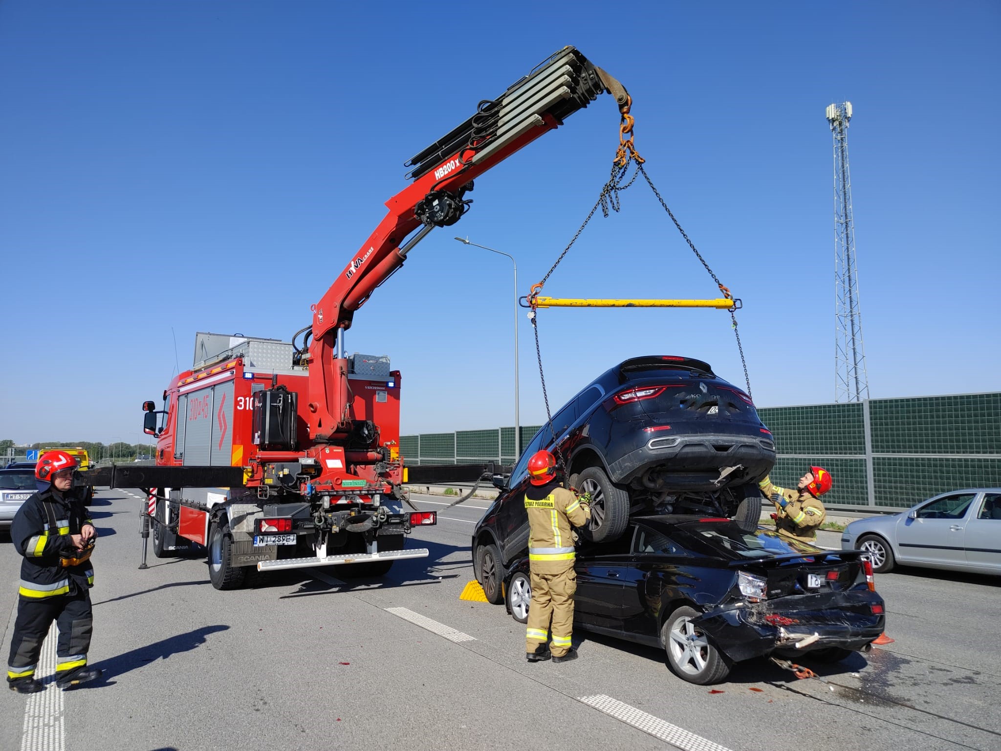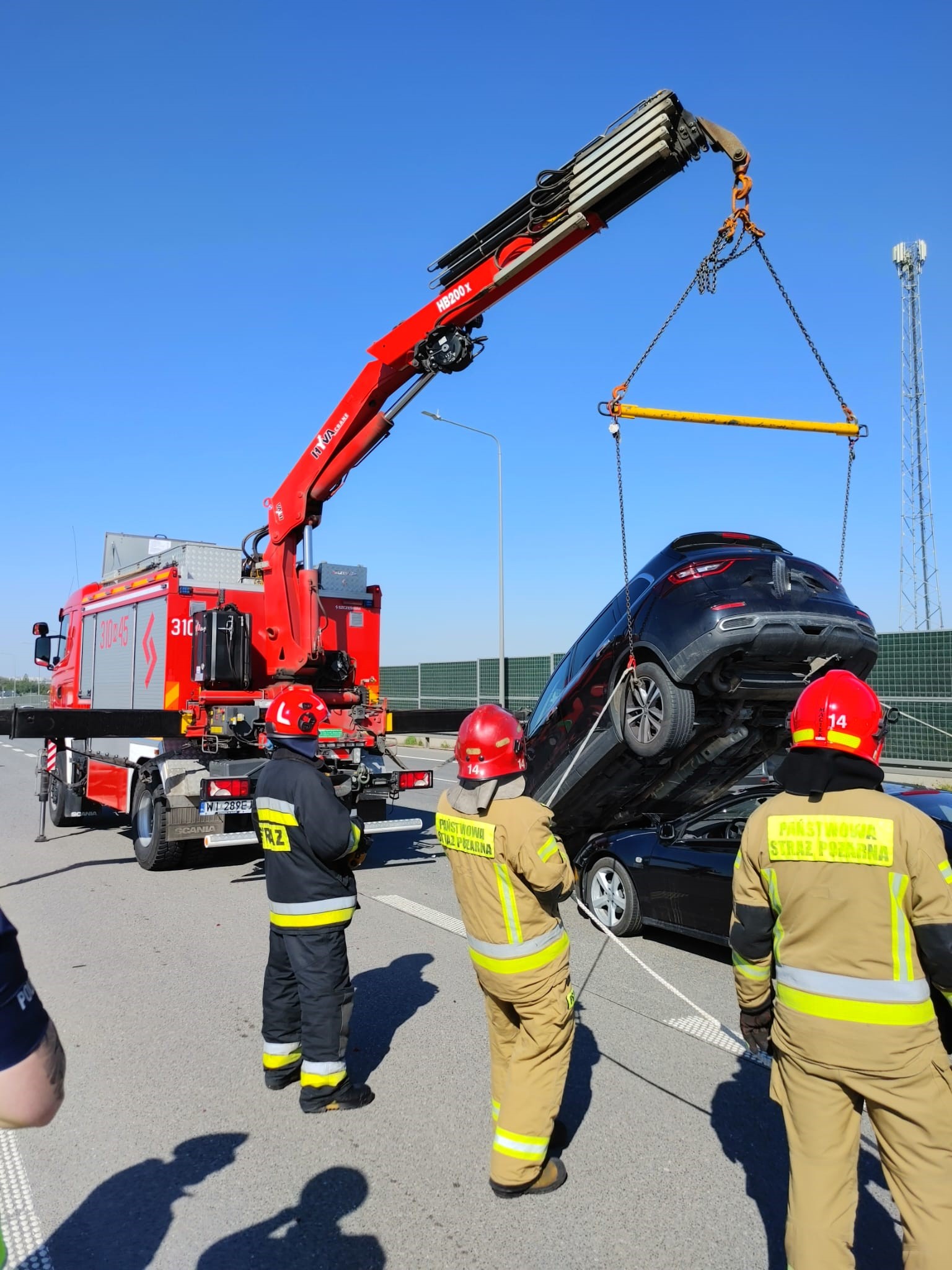 W dniu 8.05.2023 roku o godzinie 7:37 do JRG14 wpłynęło zgłoszenie o wypadku z udziałem samochodów osobowych na moście południowym. Z informacji wynikało, iż w pojazdach znajdują się osoby uwięzione.