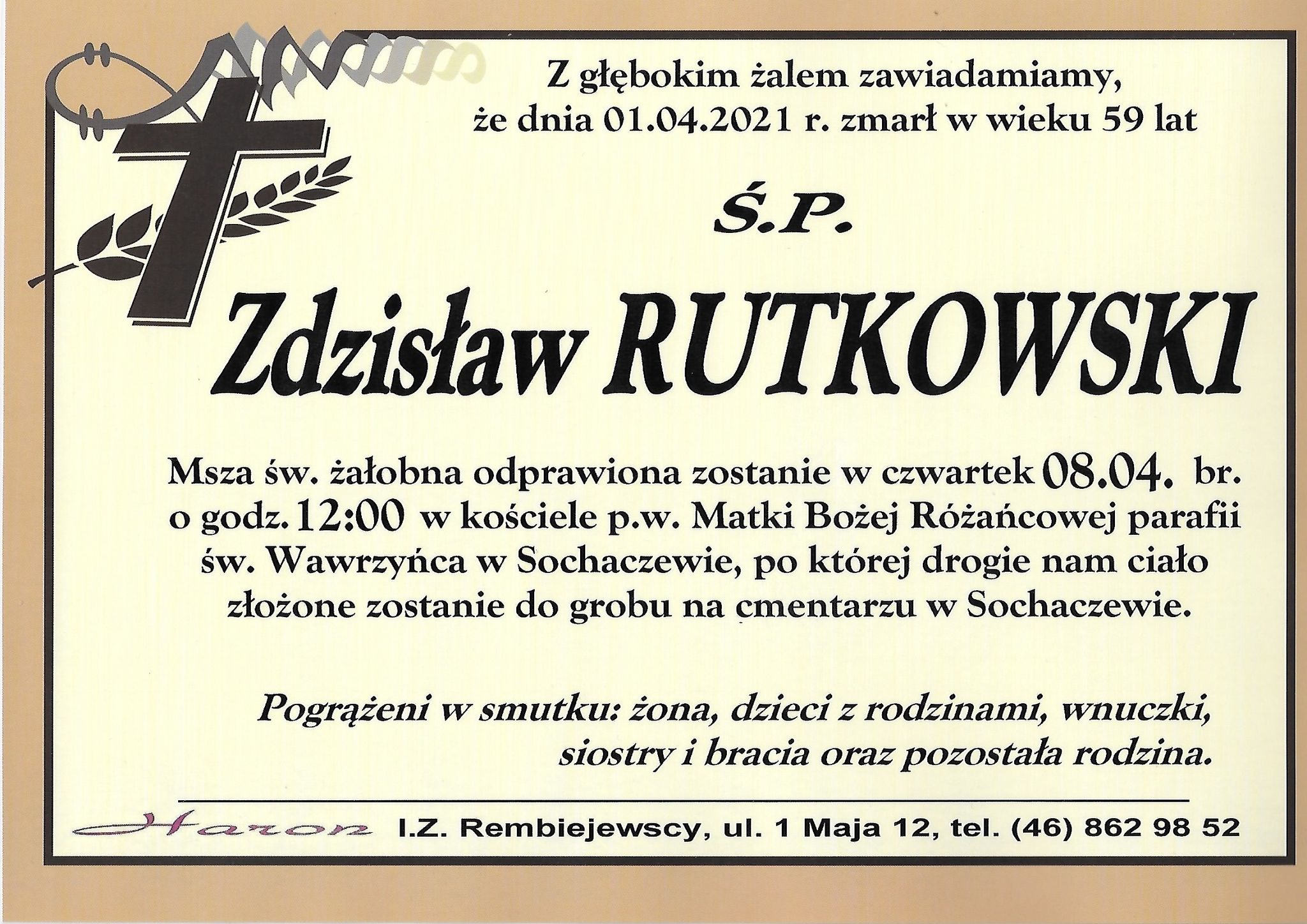 Z głębokim żalem informujemy, że w dniu wczorajszym na wieczną służbę odszedł wieloletni pracownik Jednostki Ratowniczo-Gaśniczej nr 5 - st. ogn. w st. spocz. Zdzisław Rutkowski.