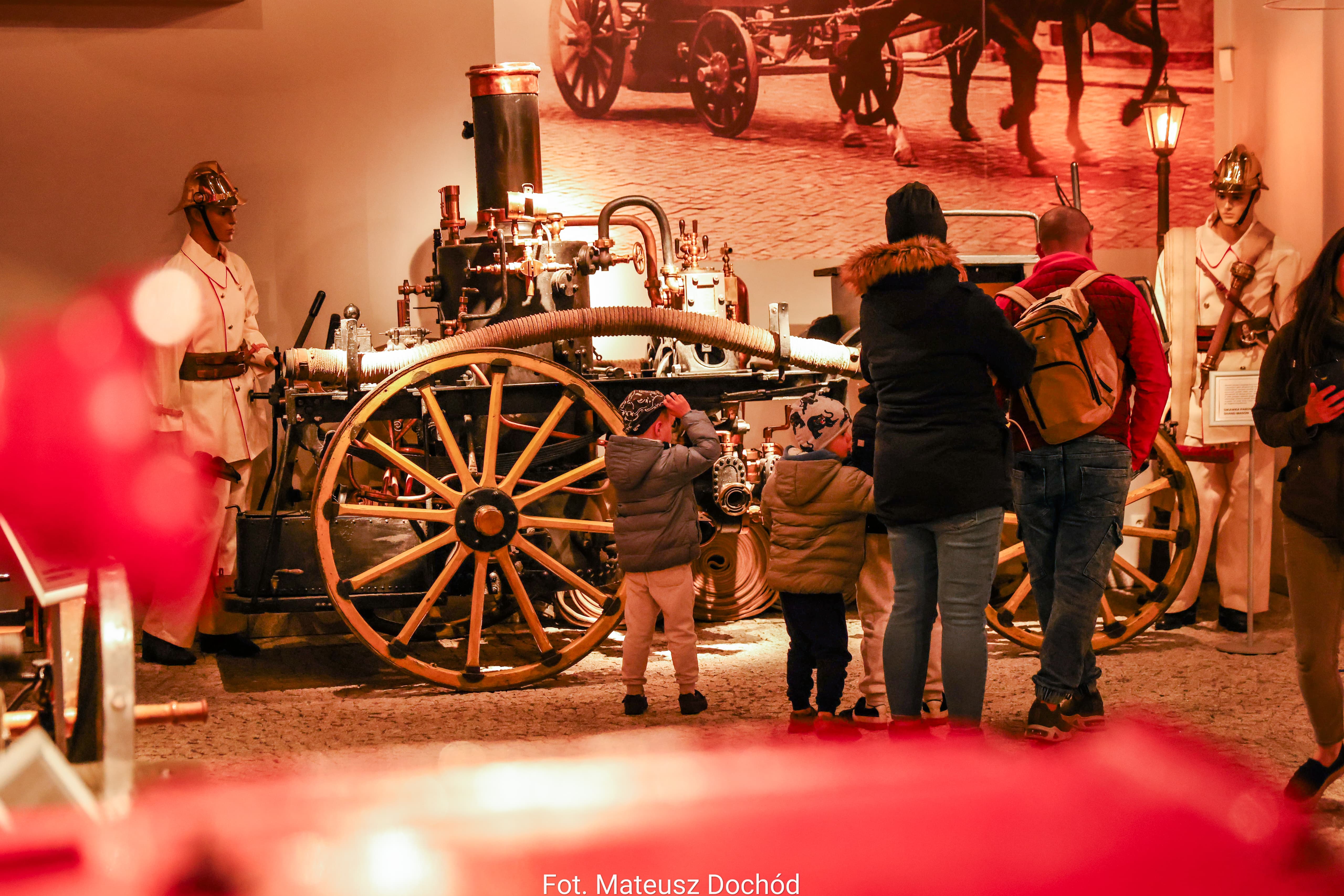 Jedną z głównych atrakcji wieczoru była wystawa zabytkowych pojazdów i sprzętu pożarniczego z przełomu XIX i XX wieku. Zgromadzone eksponaty ukazywały rozwój techniki ratowniczej na przestrzeni lat. Dzięki starannie odrestaurowanym eksponatom, odwiedzający mogli zobaczyć, jak wyglądała praca strażaków w minionych epokach.
