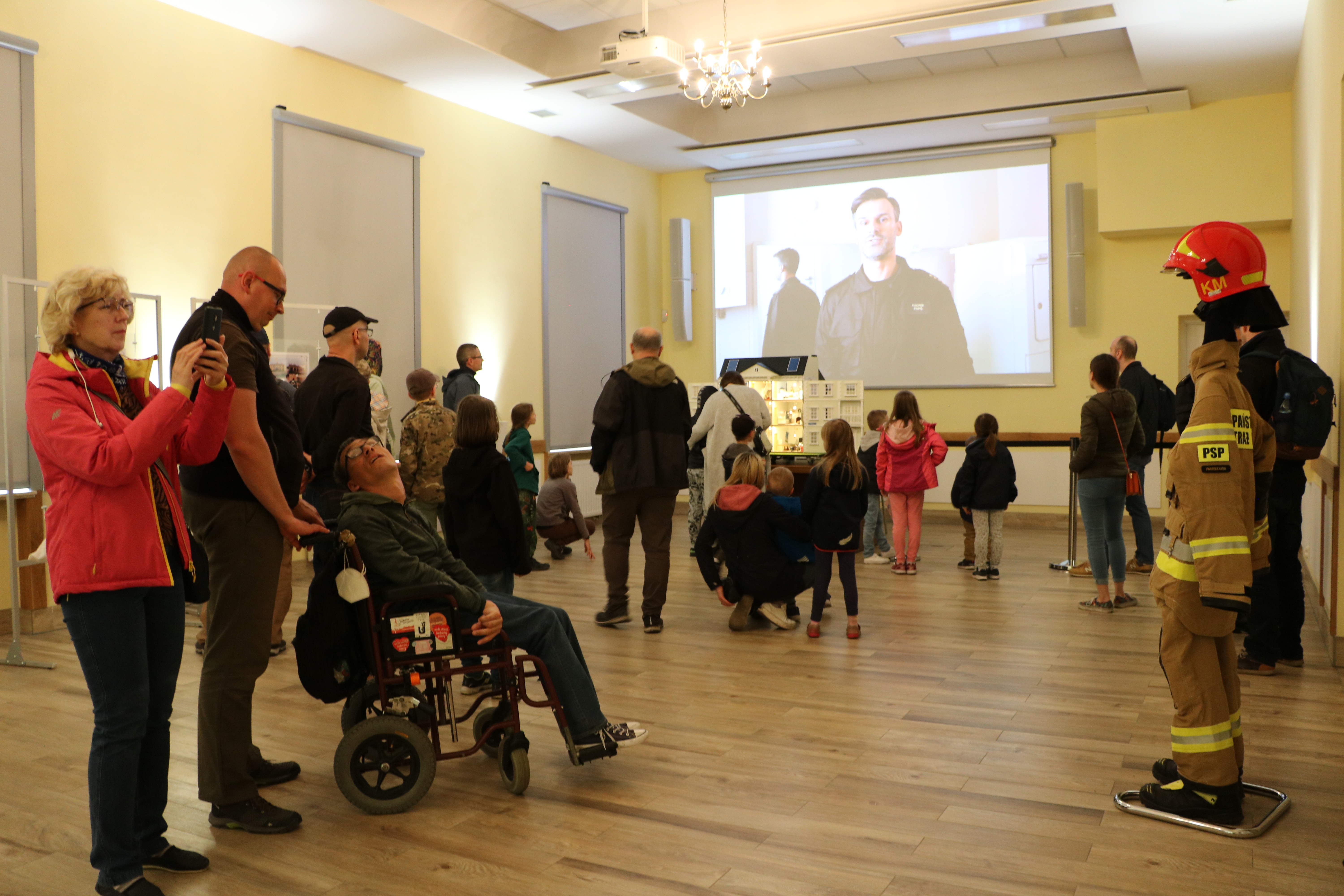 Najmłodsi uczestnicy wydarzenia mieli możliwość zaznajomienia się z Mobilnym Symulatorem Zagrożeń Pożarowych, na bazie którego prowadzący przeprowadzał lekcję dotyczące zagrożeń występujących w domach oraz o sposobach zapobiegania im.