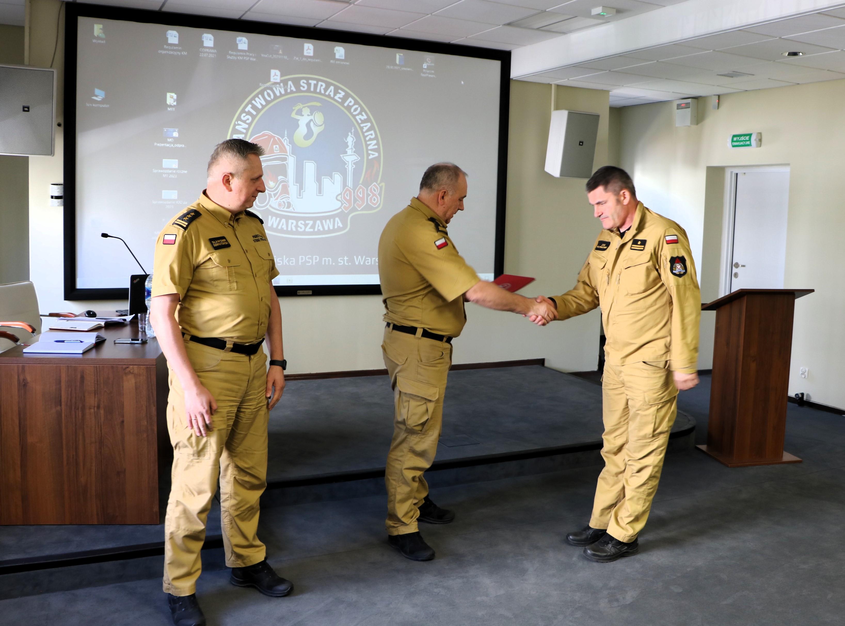 W dniu dzisiejszym Komendant Miejski PSP m.st. Warszawy st. bryg. Roman Krzywiec, w obecności swojego Zastępcy st. bryg. Sławomira Sierpatowskiego oraz Naczelnik Wydziału Kadrowego st. bryg. Anny Zielińskiej, powierzył z dniem 11 kwietnia 2024 r.: