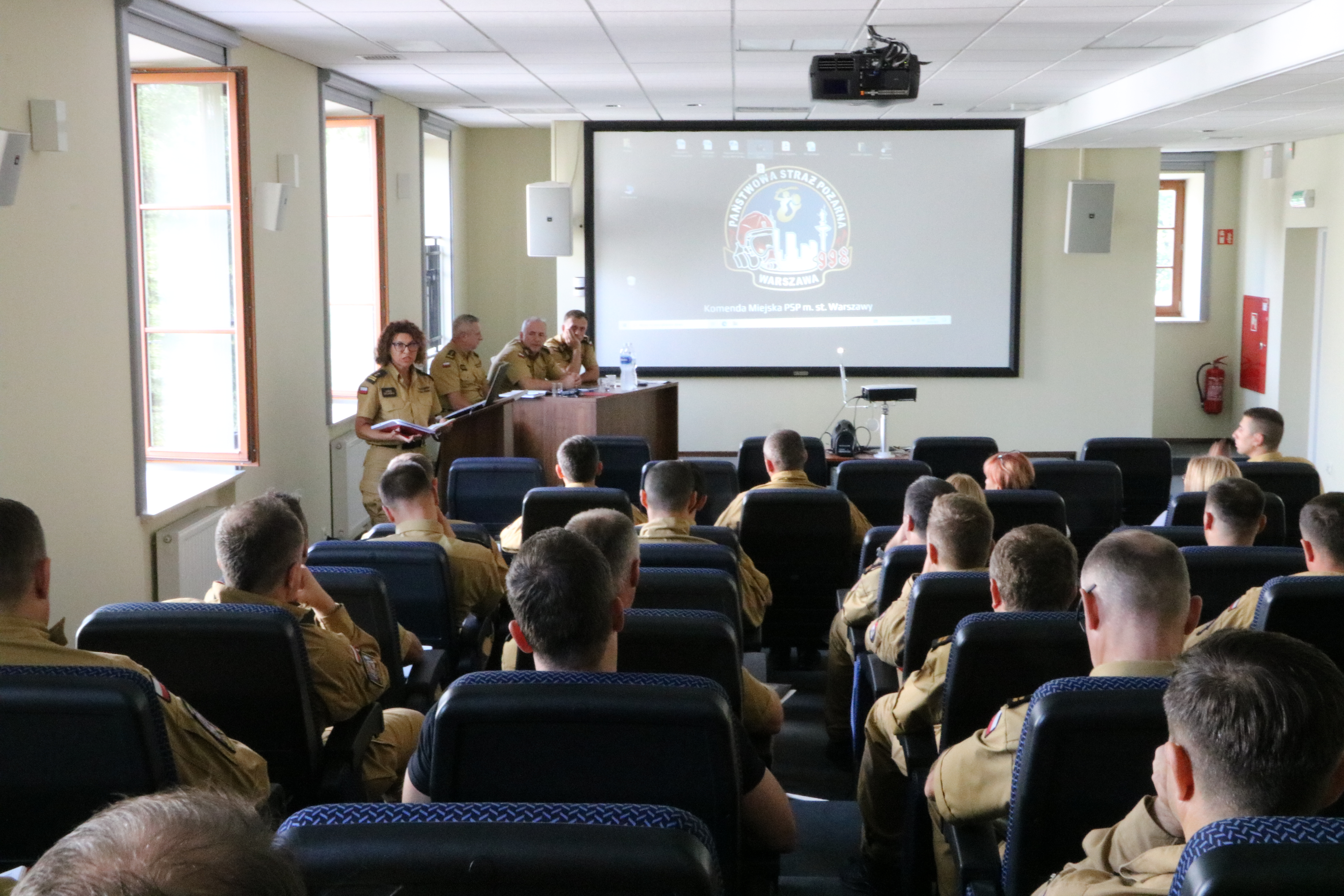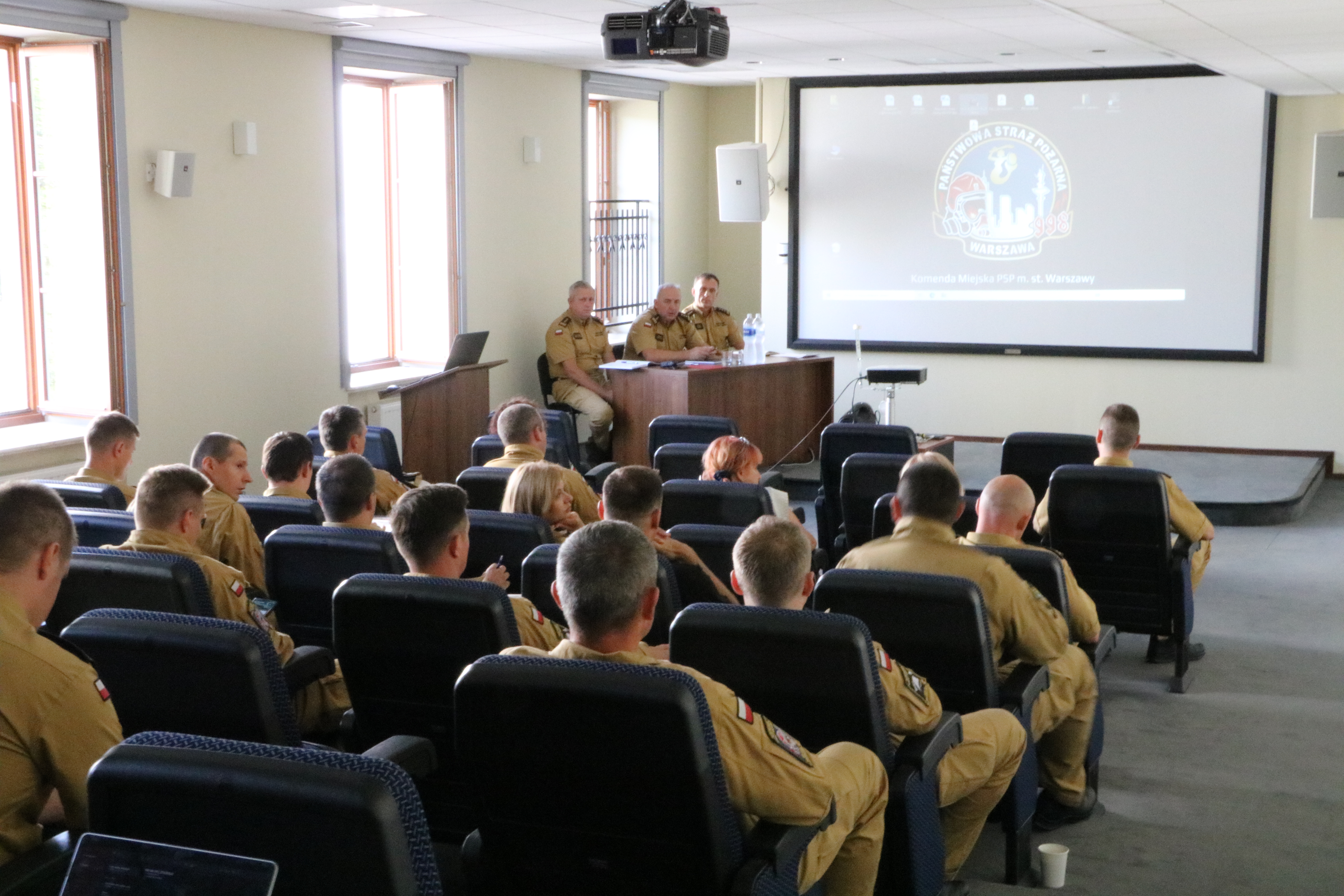 W dniu 28 sierpnia 2023 r. w budynku Wydziału Organizacyjnego KM PSP odbyła się odprawa służbowa mająca na celu omówienie bieżących zadań i nadchodzących wydarzeń. Odprawę zainicjował Komendant Miejski PSP m.st. Warszawy - st. bryg. Roman Krzywiec, który omówił sprawy bieżące oraz nakreślił plan dalszych zadań, w szczególności związanych z nadchodzącymi ćwiczeniami COOPERATION 2023 oraz V Mistrzostwami Polski Strażaków w Biegu po schodach WIEŻOWIEC 2023. Ponadto omówiono bieżące sprawy Komendy.