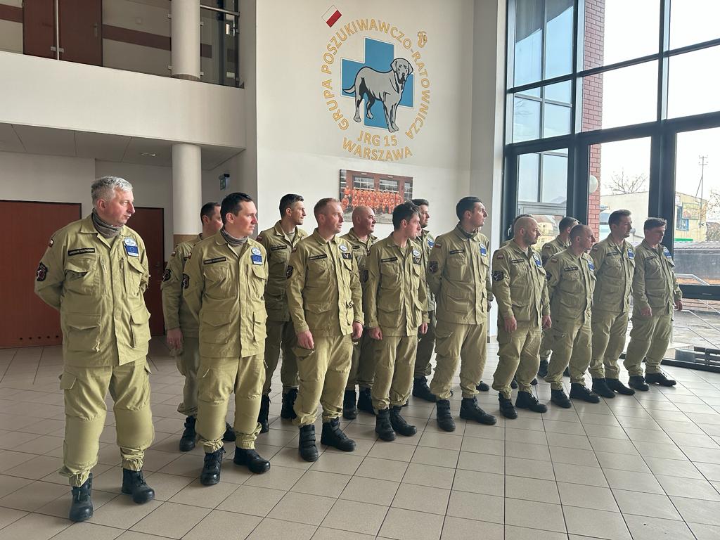 16 lutego 2023 roku w godzinach popołudniowych strażacy z ciężkiej grupy poszukiwawczo – ratowniczej biorący udział w działaniach ratowniczych po trzęsieniu ziemi w Turcji powrócili do swojej macierzystej jednostki nr 15. Na jej terenie uroczyście powitali ich i podziękowali za pracę: Mazowiecki Komendant Wojewódzki PSP - st. bryg. Jarosław Piotrowski oraz Komendant Miejski PSP m.st. Warszawy - st. bryg. Roman Krzywiec.