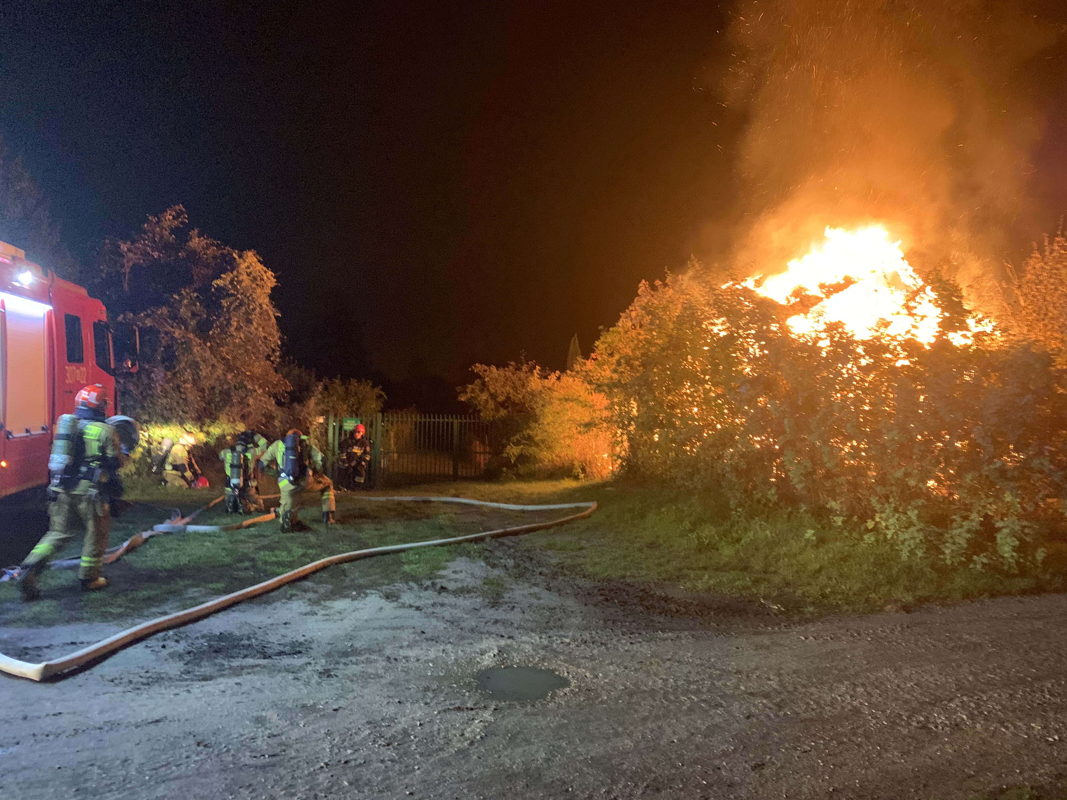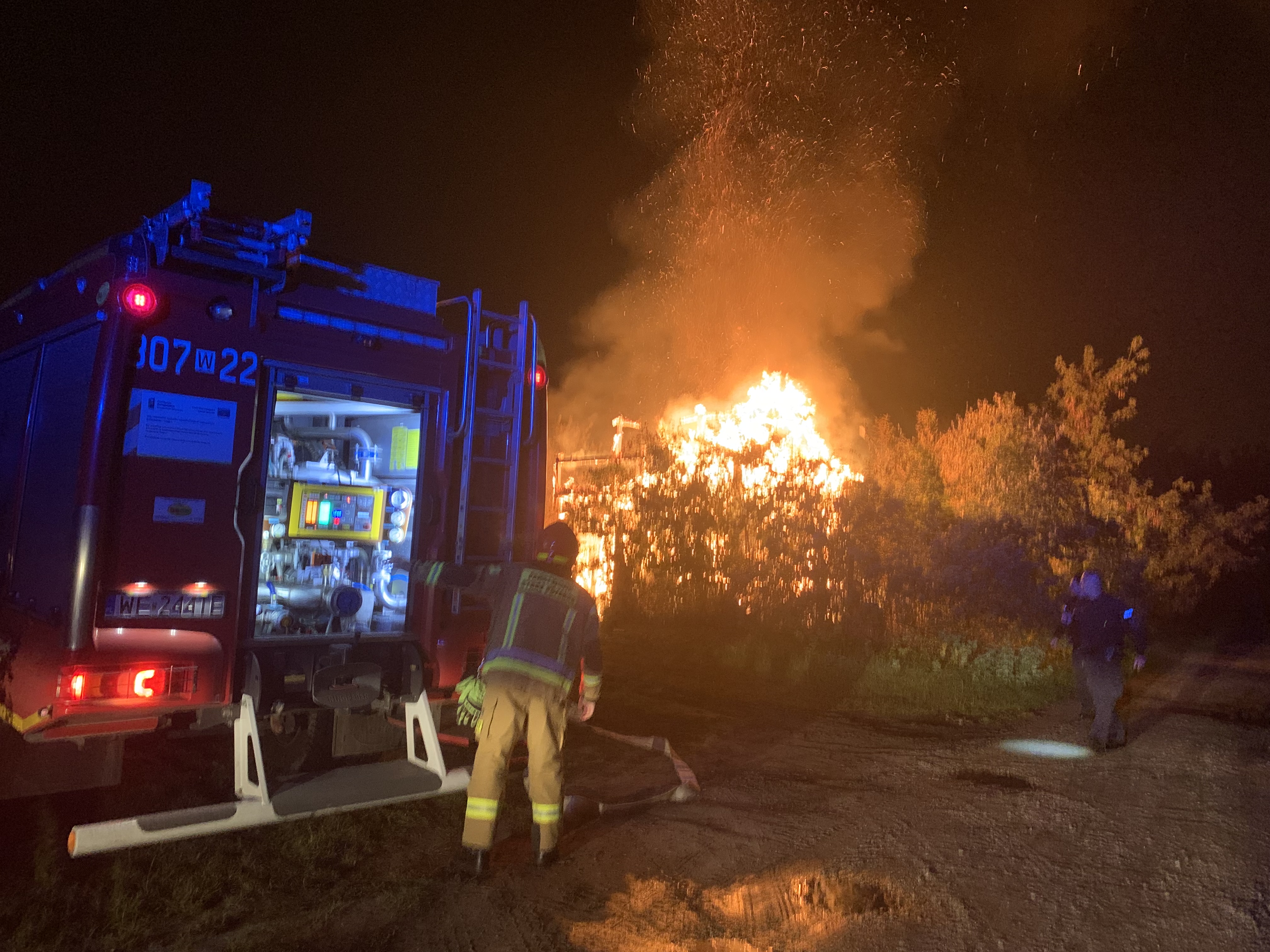 W dniu 21.09.2022 o godz. 2:35 doszło do pożaru altanki działkowej przy ul. Marynin. Na miejsce akcji zadysponowane zostały dwa zastępy z JRG 7. Po dojeździe na miejsce zdarzenia, kierujący działaniami ratowniczymi stwierdził, że na terenach ogródków działkowych pali się drewniany budynek. Obiekt był całkowicie objęty płomieniami. Działania PSP polegały na zabezpieczeniu miejsca zdarzenia oraz podaniu dwóch prądów wody w natarciu na palący się budynek. Po lokalizacji pożaru zauważono,że w odległości ok 100m pali się kolejna altanka. Rozpoczęto działania gaśnicze na drugą altankę za pomocą jednego prądu wody. Na miejsce zadysponowano kolejny zastęp gaśniczy z JRG 6. Następnie przystąpiono do dogaszenia obydwu budynków oraz rozbiórki jego uszkodzonych elementów przy pomocy bosaka, topora oraz piły ratowniczej. Pogorzelisko sprawdzono za pomocą kamery termowizyjnej- nie stwierdzono zagrożenia.