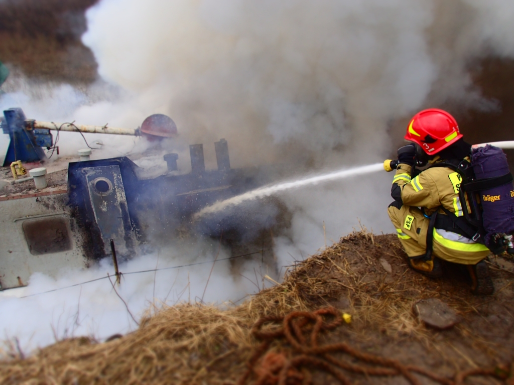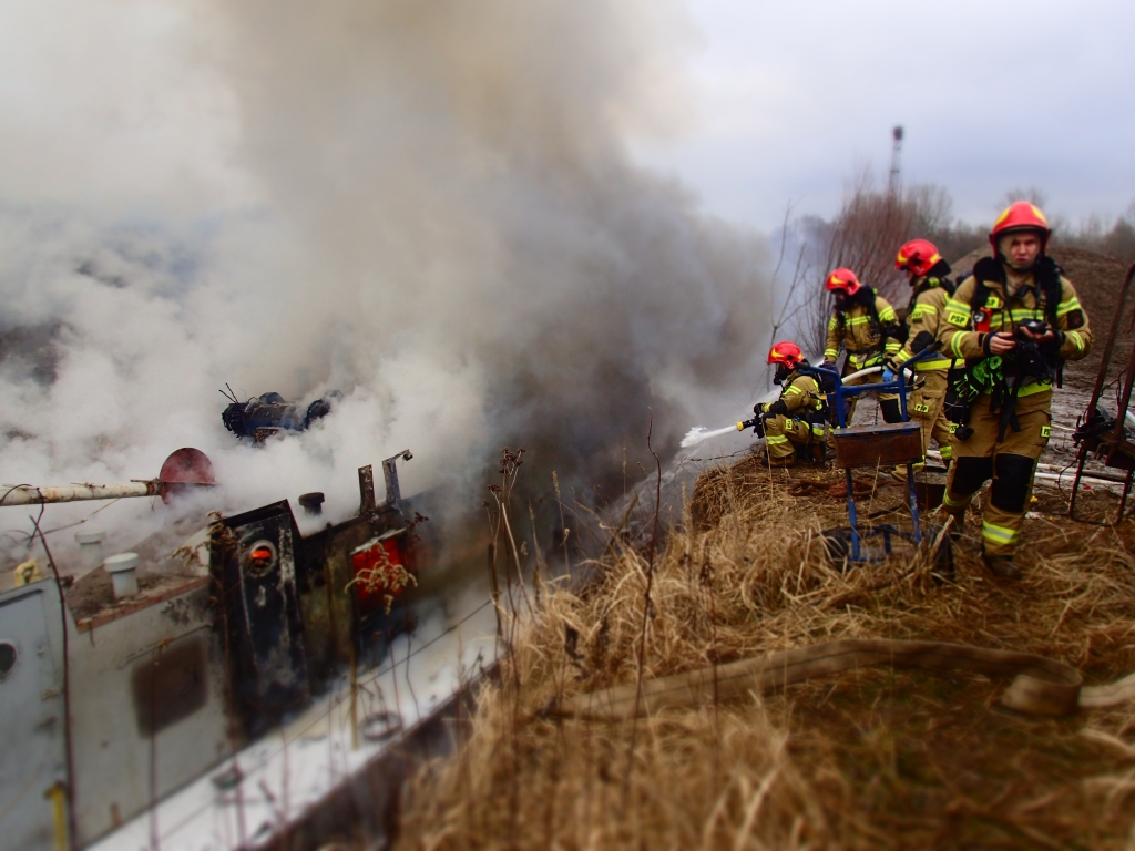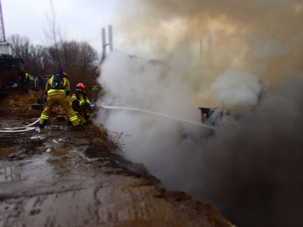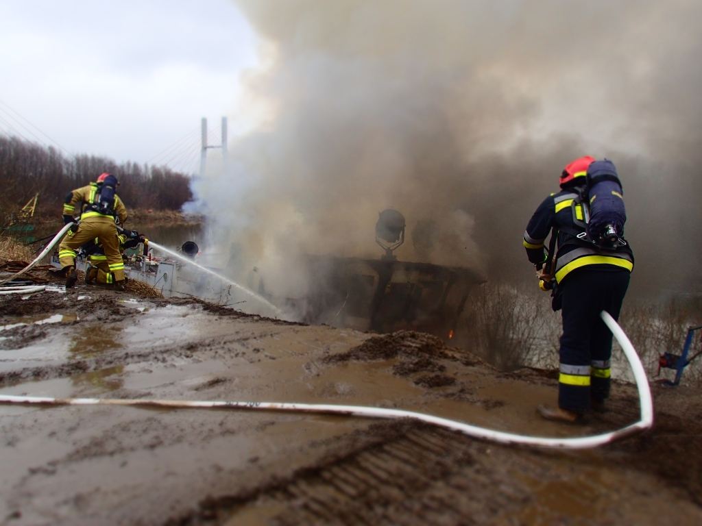 W dniu 10.02.2021 r. około godziny 11:00 do Jednostki Ratowniczo-Gaśniczej nr 14 wpłynęło zgłoszenie o pożarze barki na Wiśle na terenie piaskarni.