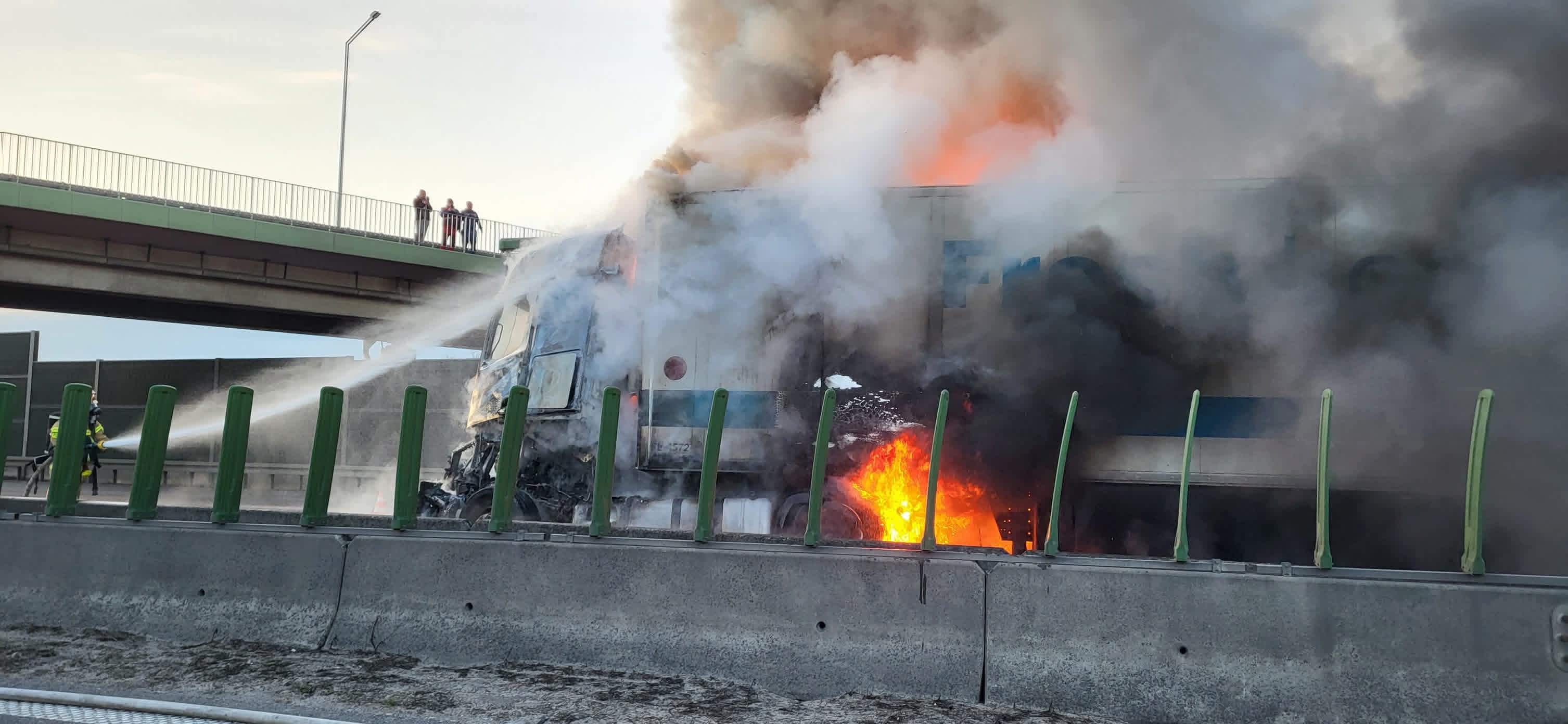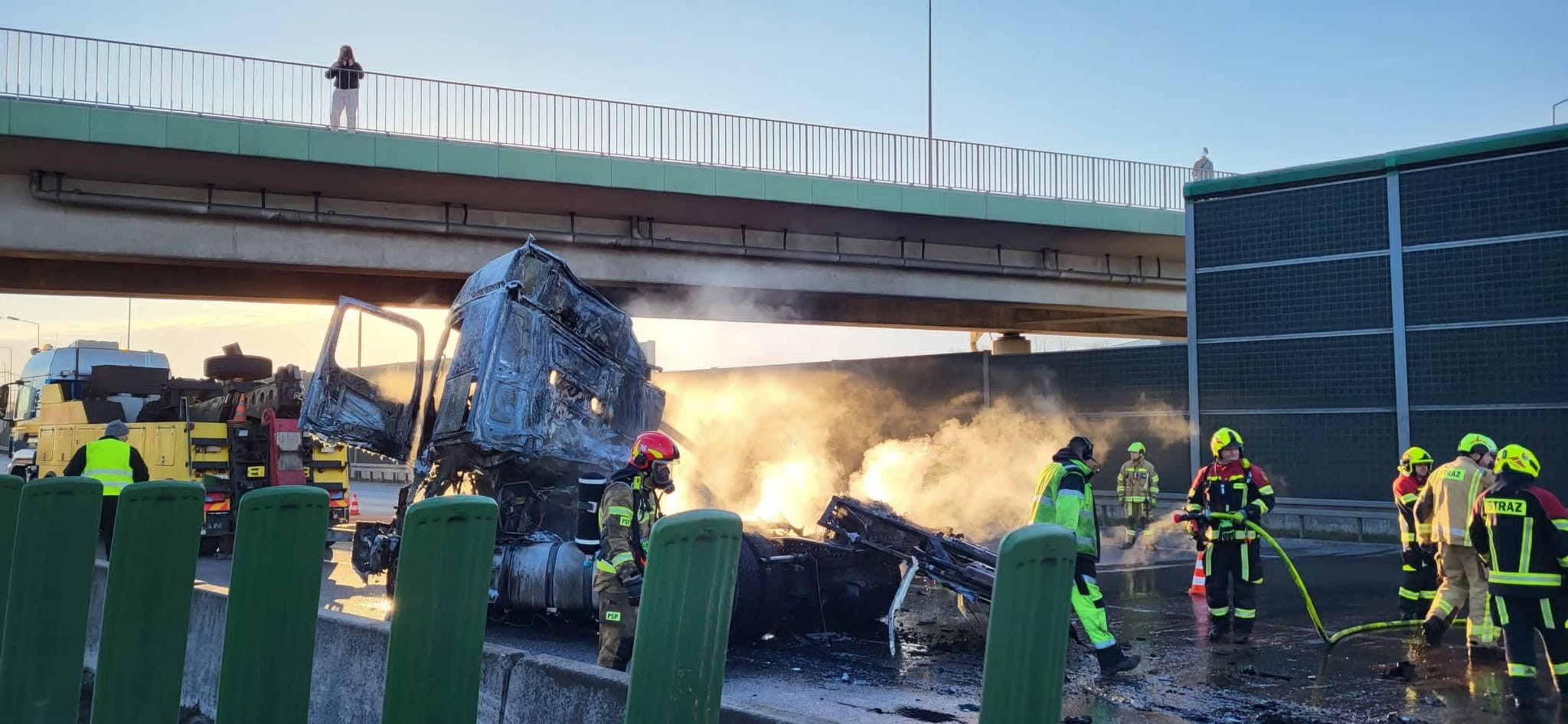 Zgłoszenie o pożarze wpłynęło do służb ratunkowych o godzinie 06:11. Osoby postronne zaalarmowały strażaków o płonącym ciągniku siodłowym. Ogień rozprzestrzeniał się niezwykle dynamicznie – zanim ratownicy dotarli na miejsce, pożar zdążył już całkowicie zająć kabinę pojazdu i zaczął przenosić się na naczepę wypełnioną artykułami spożywczymi.