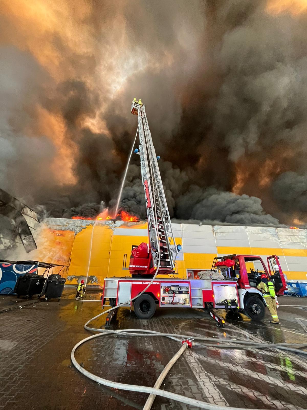 Pożar hali handlowej na ul. Marywilskiej 44