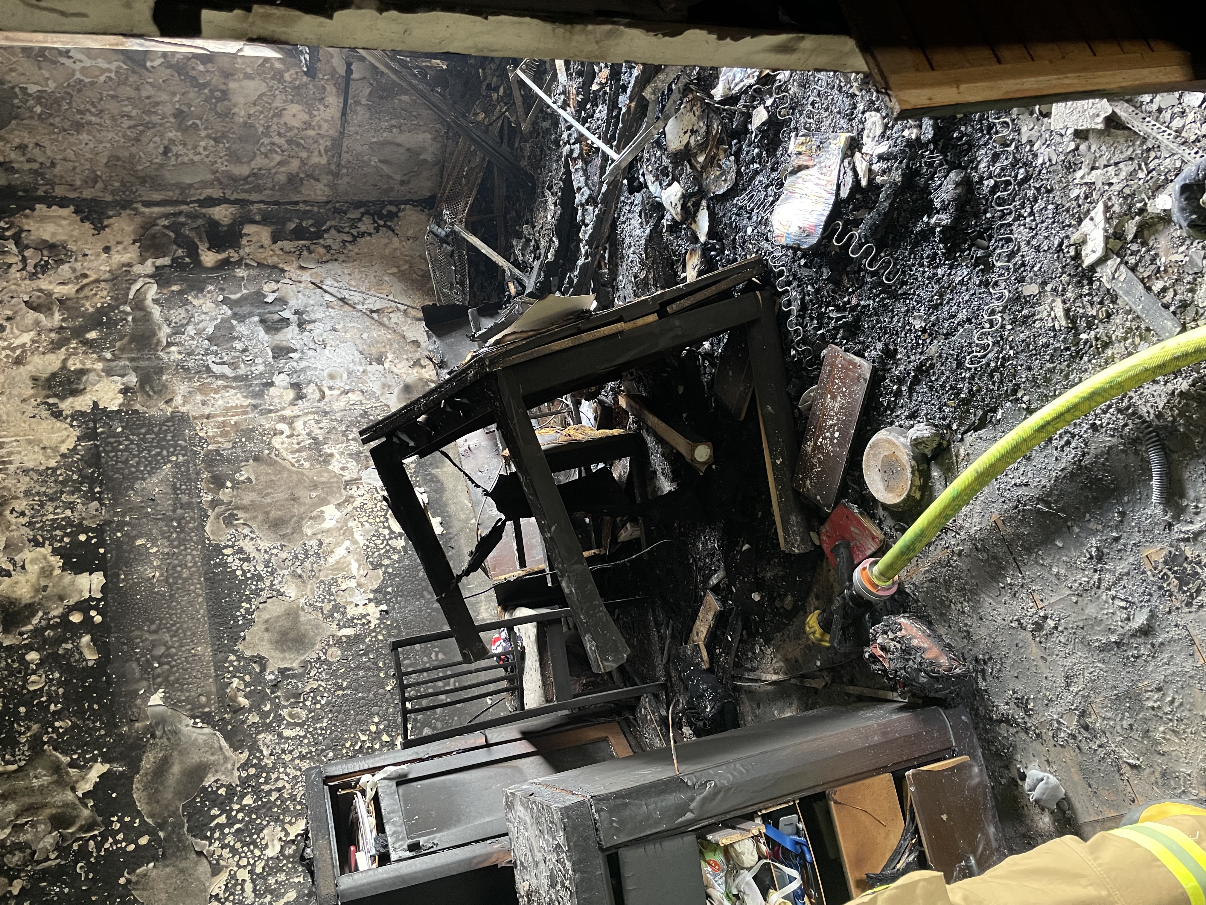 Po przybyciu na miejsce zdarzenia zastępy zastały rozwinięty pożar mieszkania na 10 piętrze budynku wielorodzinnego (widoczne zadymienie wydobywające się przez okna balkonowe na ostatniej kondygnacji). Właścicielka mieszkania opuściła lokal przed przybyciem PSP i nie wymagała udzielania pomocy medycznej. Działania PSP polegały na zabezpieczeniu miejsca zdarzenia oraz rozwinięciu jednej linii gaśniczej po klatce schodowej do palącego się mieszkania. Podjęto również decyzję o rozstawieniu drabiny mechanicznej. W wyniku rozpoznania stwierdzono, że pożarem objęte jest cały salon w mieszkaniu. Podano jeden prąd wody na palące się elementy wyposażenia. Po zlokalizowaniu pożaru przeszukano dokładnie całe mieszkanie. Po dogaszeniu wszystkich tlących się elementów całe mieszkanie sprawdzono kamerą termowizyjną. Kondygnacje objęte zadymieniem oddymiono przy użyciu dwóch wentylatorów oraz sprawdzono przy użyciu detektora wielogazowego. Nie stwierdzono dalszego zagrożenia dla użytkowników obiektu. Na miejscu pozostał patrol Policji, prowadzący swoje czynności.