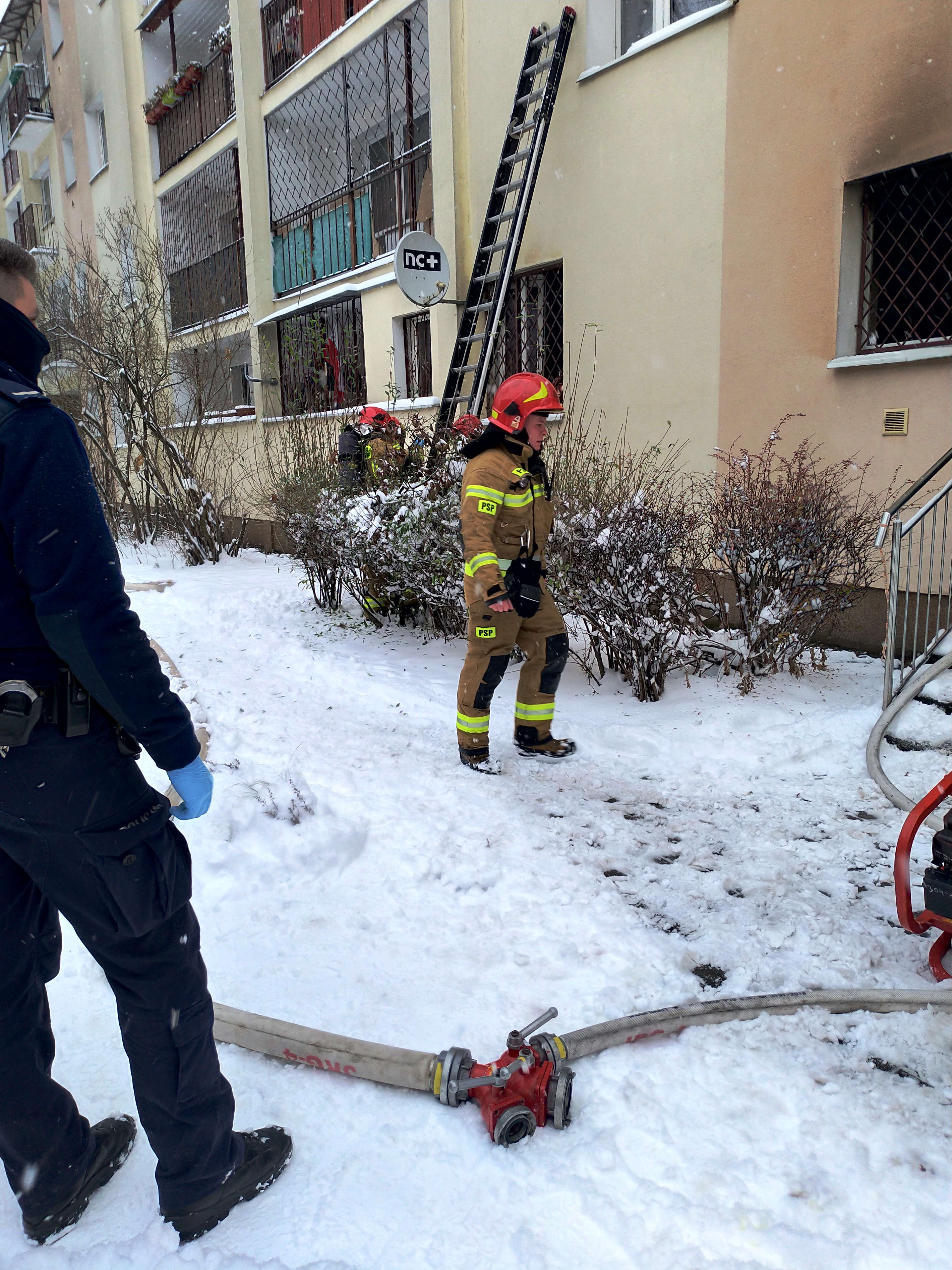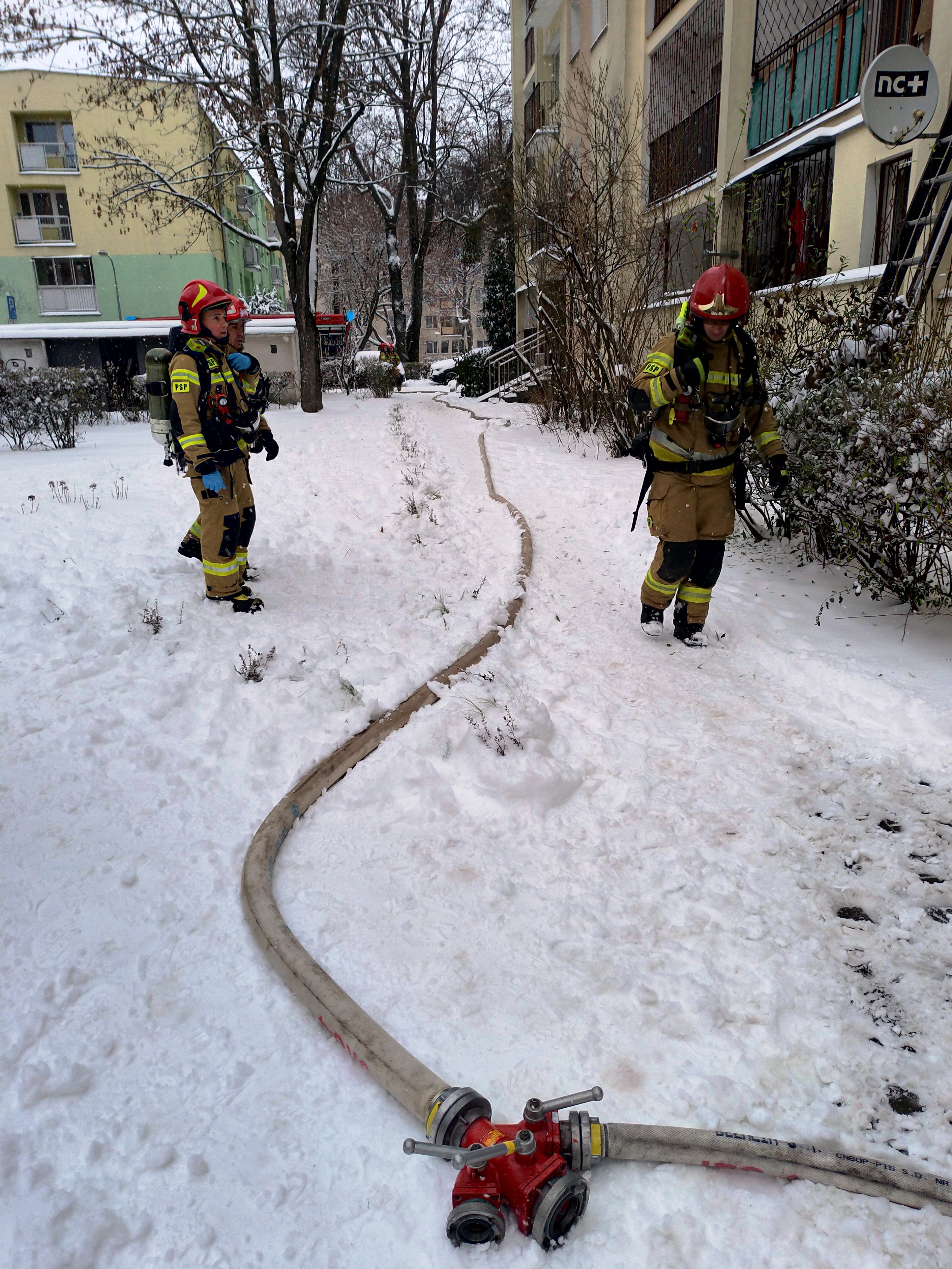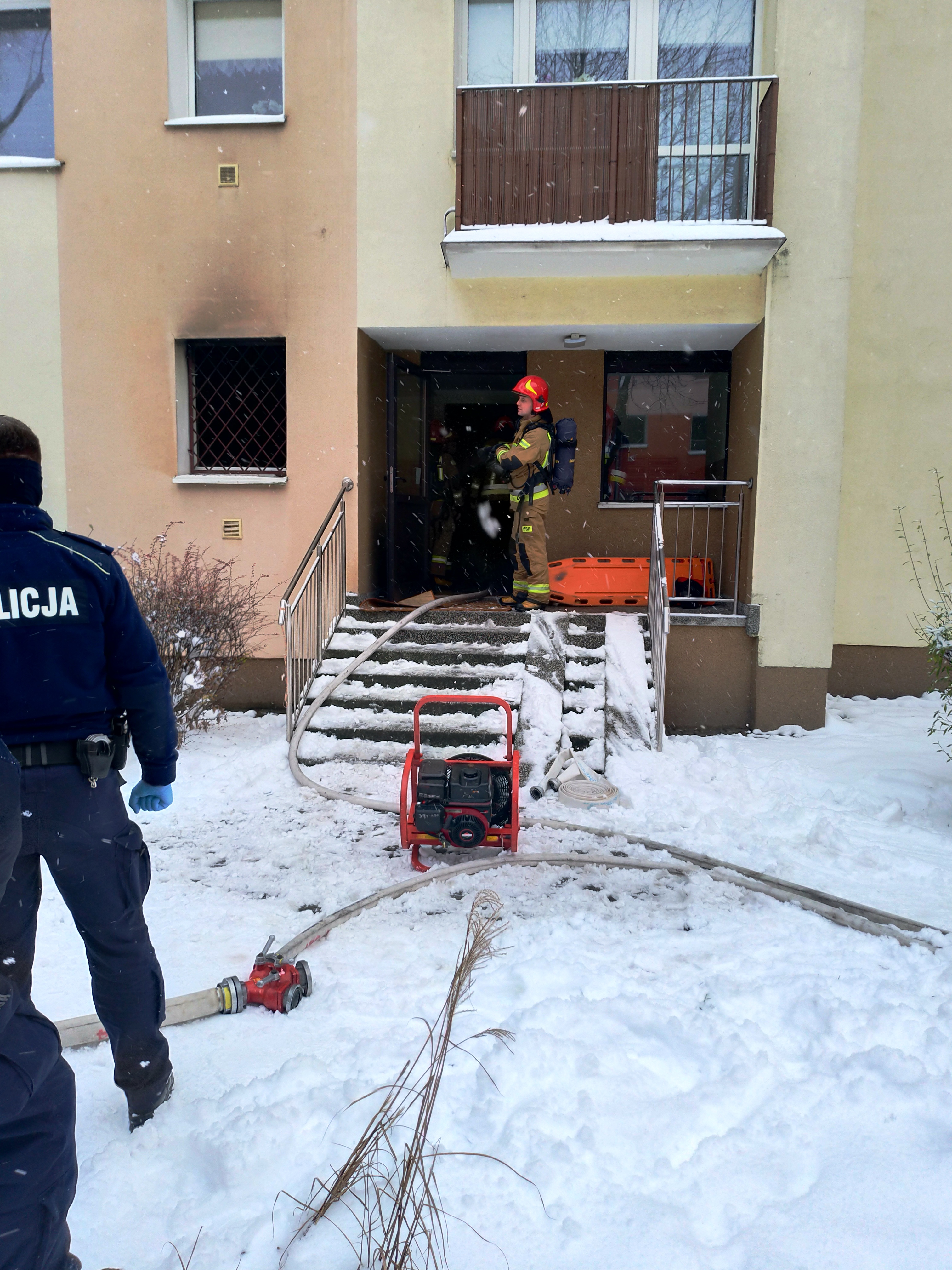 - wprowadzeniu ratowników po klatce schodowej z linią gaśniczą do mieszkania,