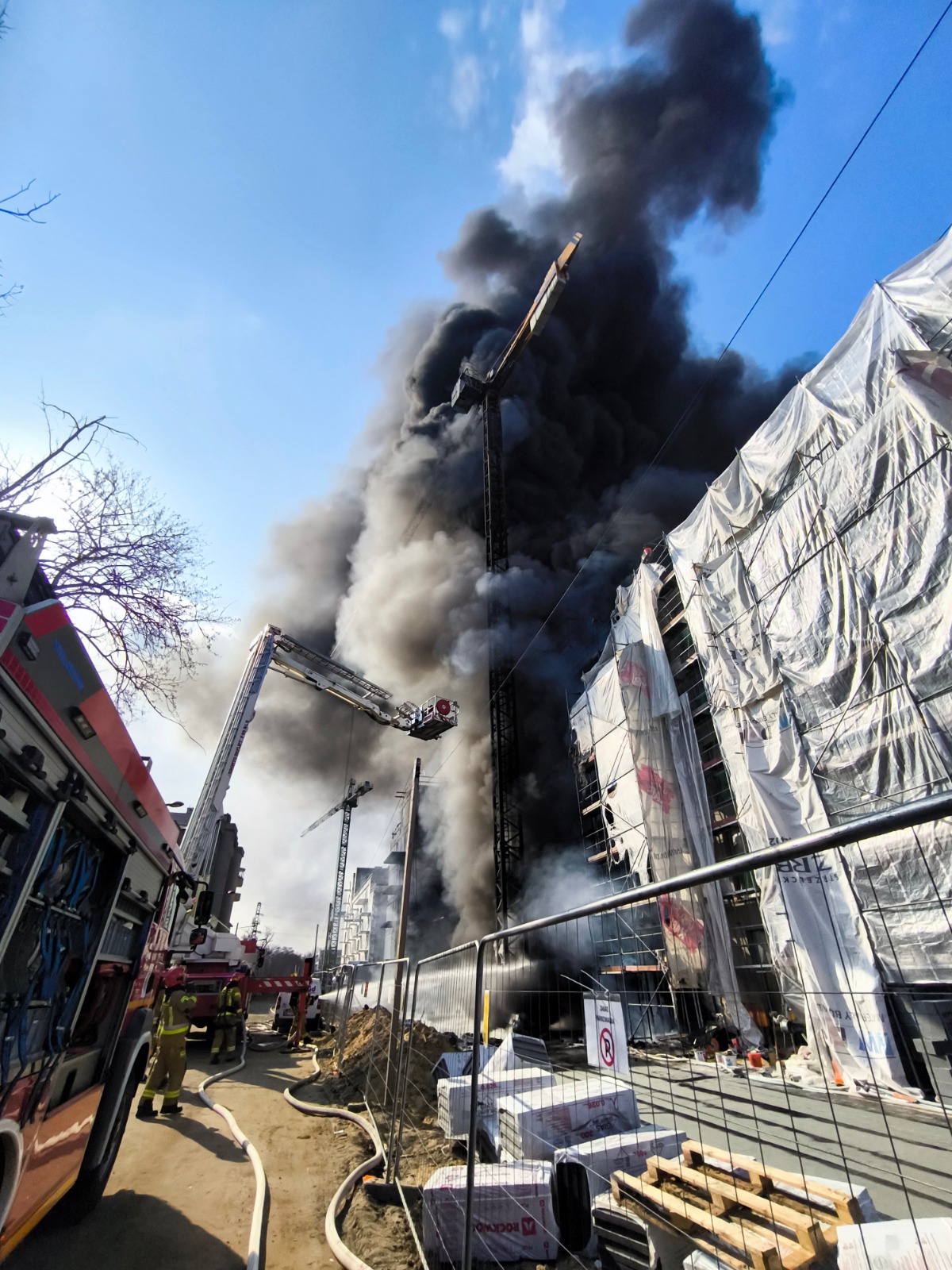 18 marca 2026 r. warszawscy strażacy prowadzili wymagające i wieloetapowe działania ratowniczo-gaśnicze na terenie budowy w rejonie ul. Laurowej.