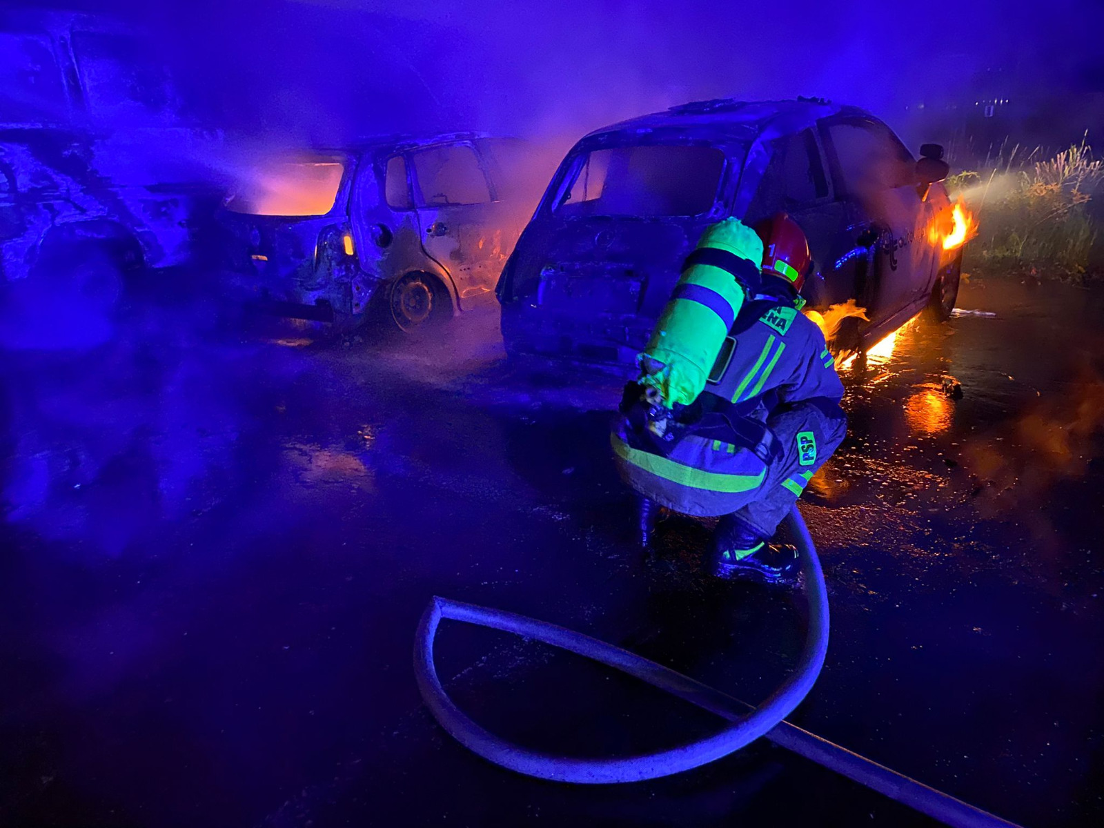 Dnia 05.07.2022 r. o godz. 02:14 do Punktu Alarmowego JRG1 w Warszawie wpłynęło zgłoszenie o pożarze 3 aut. Do zdarzenia zadysponowano dwa zastępy gaśnicze. Pożar miał miejsce na parkingu przy ul. Jagiellońskiej 78. Działania strażaków polegały na podaniu dwóch prądów gaśniczych w celu ugaszenia aut. Ostatecznie 2 pojazdy zostały całkowicie spalone, a 2 sąsiadujące częściowo nadpalone.