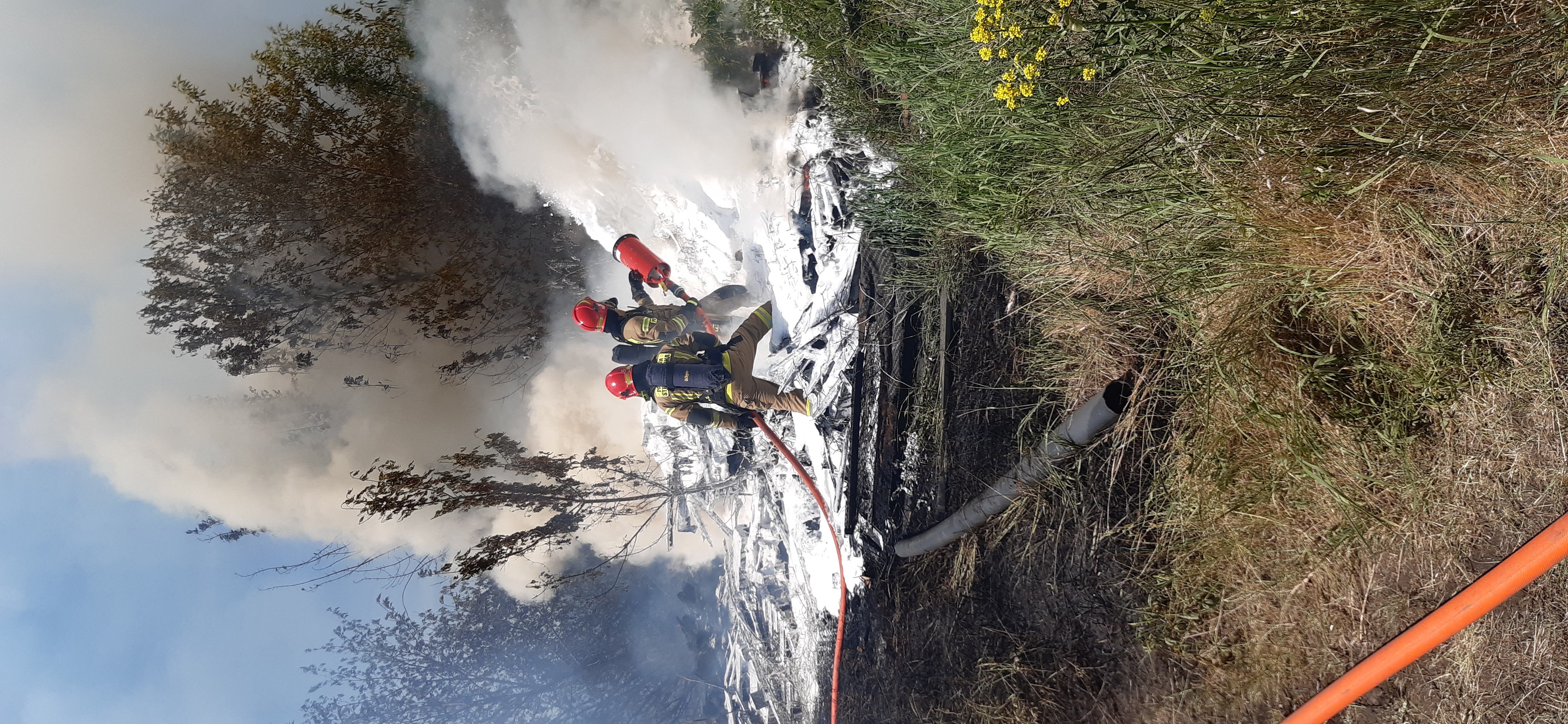 Po dwóch godzinach akcji pożar został opanowany. Dalsze działania polegały na przelewaniu oraz sprawdzaniu kamerami termowizyjnymi pogorzeliska.