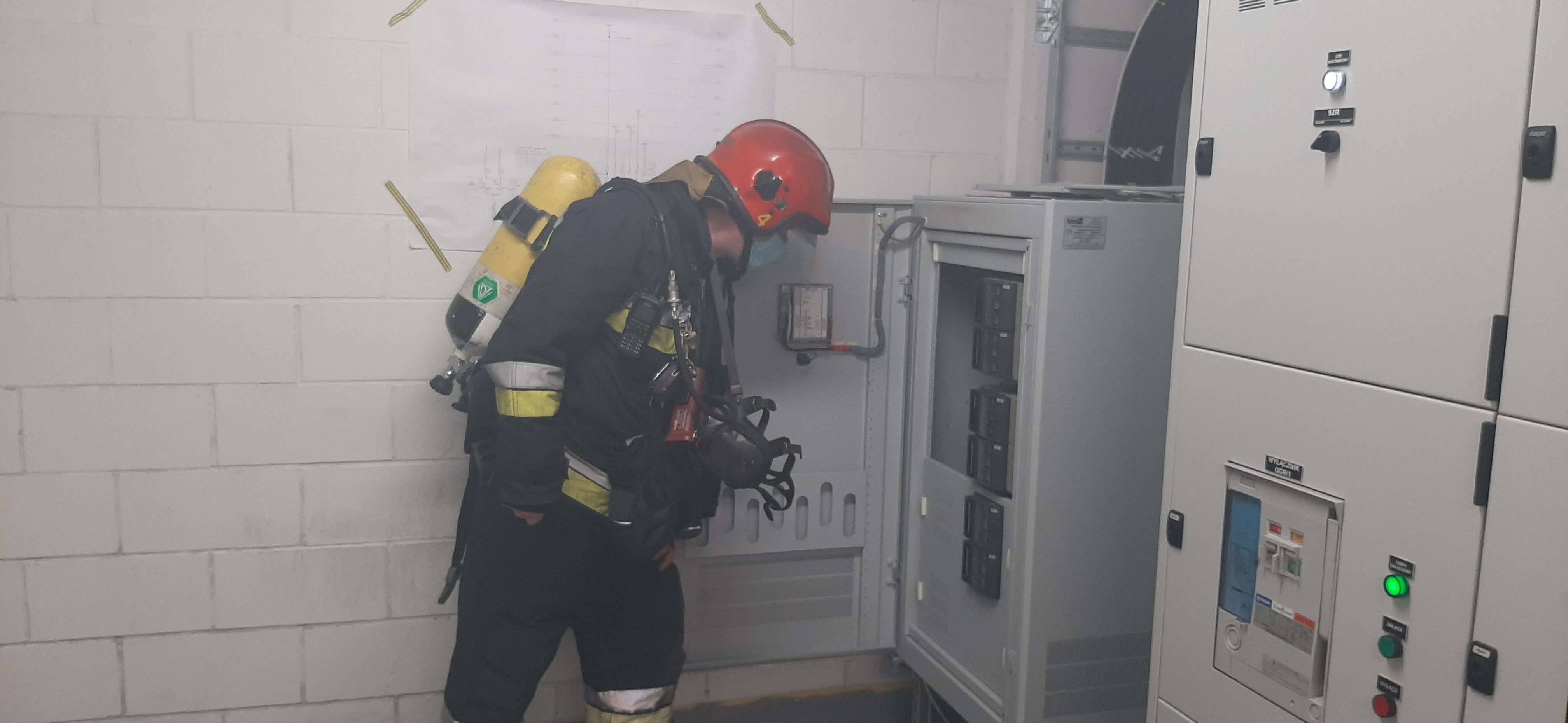 Po przybyciu na miejsce zdarzenia otrzymano informację od ochrony budynku, że w pomieszczeniu rozdzielni głównej RNNC mieszczącej się na poziomie -2 doszło do zwarcia i pożaru w szafie baterii kondensatorów. Ewakuacji budynku nie zarządzono.