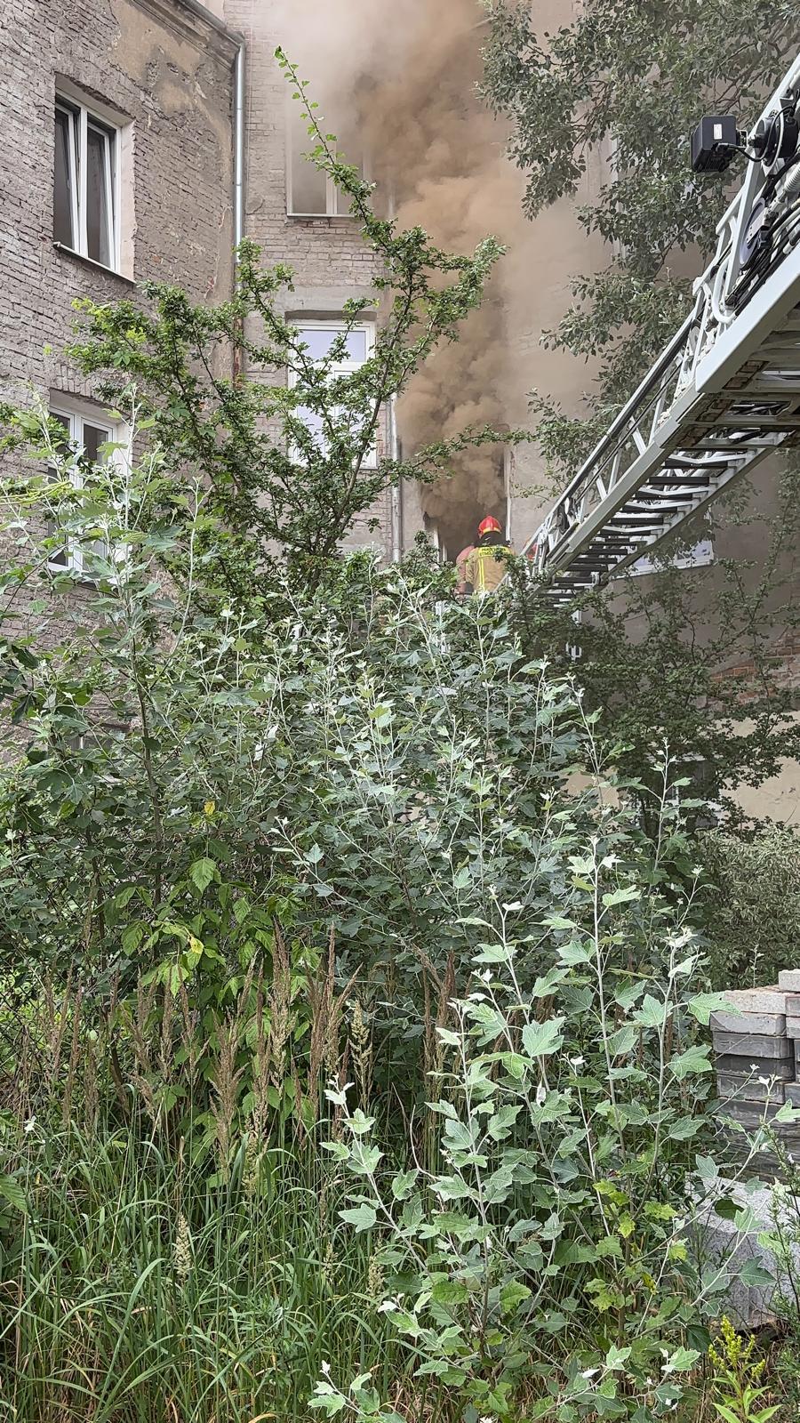 W dniu 22.06.2024r. o godz. 6:26 otrzymaliśmy zgłoszenie o pożarze mieszkania w 3-piętrowym budynku wielorodzinnym przy ul. Radzymińskiej. Po przybyciu zastępów PSP na miejsce zdarzenia udano się na rozpoznanie. Na miejscu zastano w pełni rozwinięty pożar mieszkania na pierwszym piętrze, z którego wydobywał się gęsty dym. Poszkodowana kobieta znajdowała się w środku i wzywała pomocy.