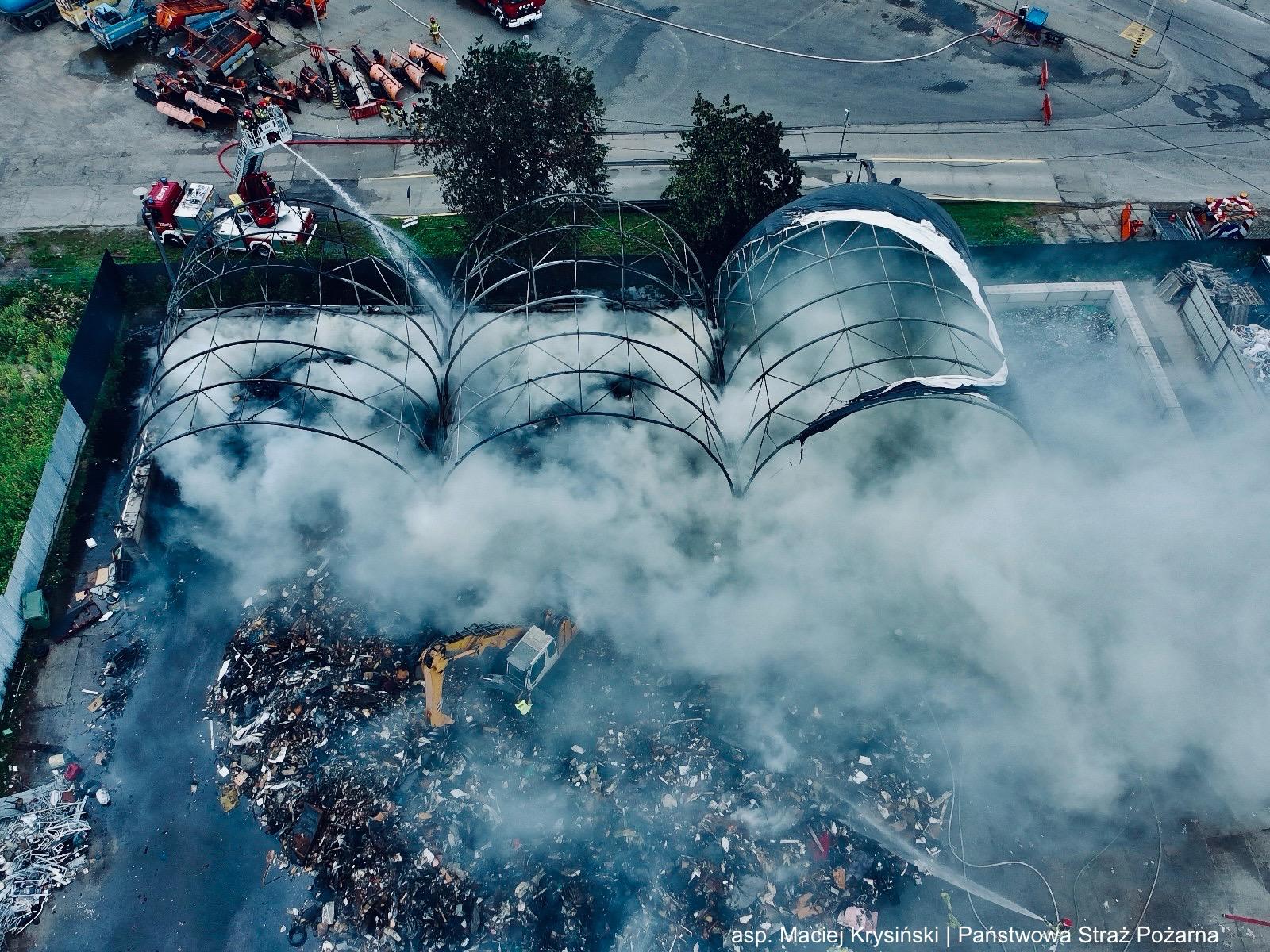Pożar w Punkcie Selektywnej Zbiórki Odpadów Komunalnych w Wilanowie