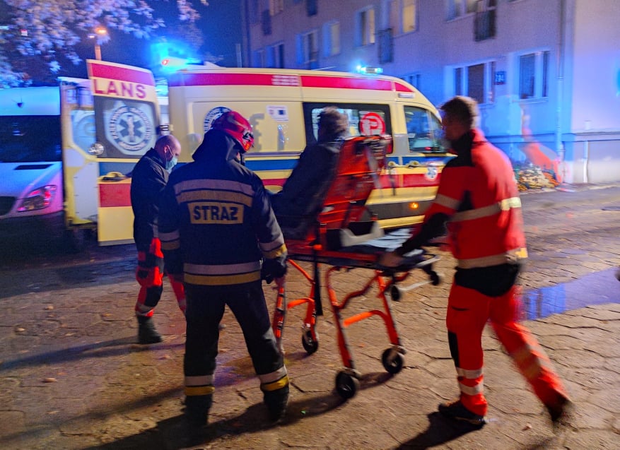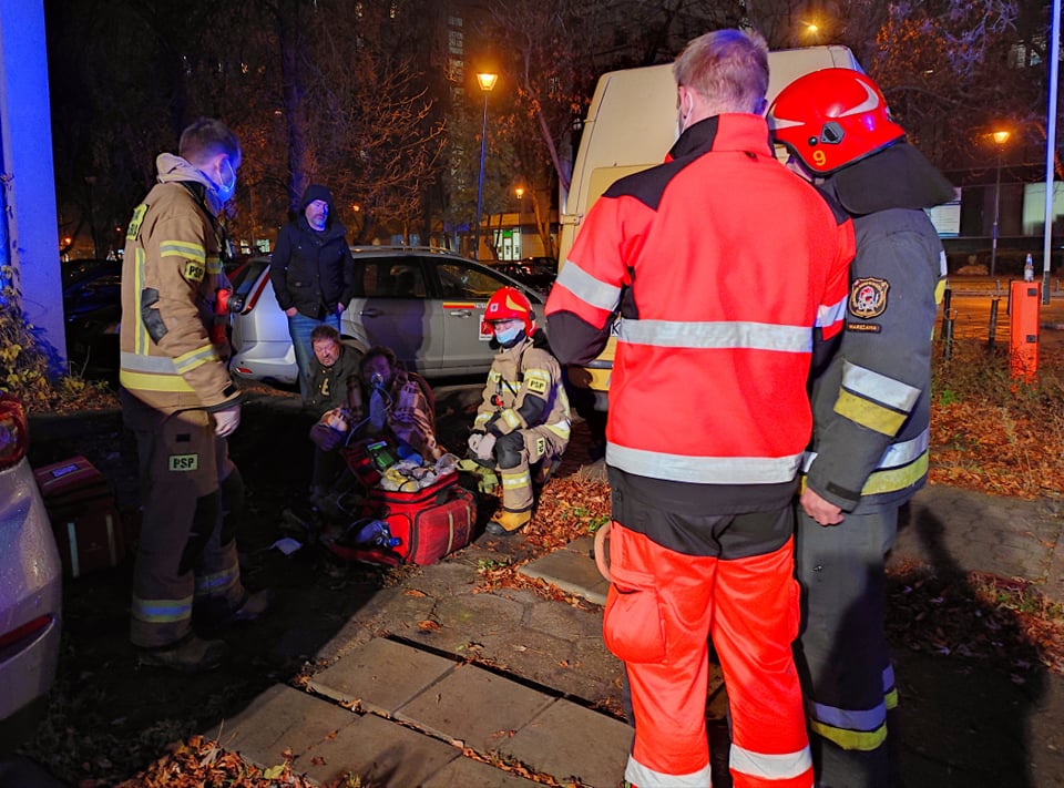 Po przyjeździe na miejsce zdarzenia ustalono, że w opuszczonym budynku w dwóch pomieszczeniach powstał pożar. Istniało podejrzenie że wewnątrz mogą znajdować się osoby bezdomne. Działania zastępów polegały na podaniu prądu wody w natarciu przez okno budynku na źródło ognia, jednocześnie druga rota weszła forusjąc drzwi do wewnątrz dogaszając i przeszukując pomieszczenia. W wyniku przeszukania odnaleziono dwóch mężczyzn, którzy zostali wyniesieni na zewnątrz budynku, byli przytomni jednak mieli ograniczoną możliwość poruszania się samodzielnie. Poszkodowani zostali przekazani Pogotowiu Ratunkowemu. Pozostałe działąnia polegały na oddymieniu pomieszczeń, pomownemu przeszukaniu oraz sprawdzeniu kamerą termowizyjną pod kątem ukrytych zarzewi ognia.