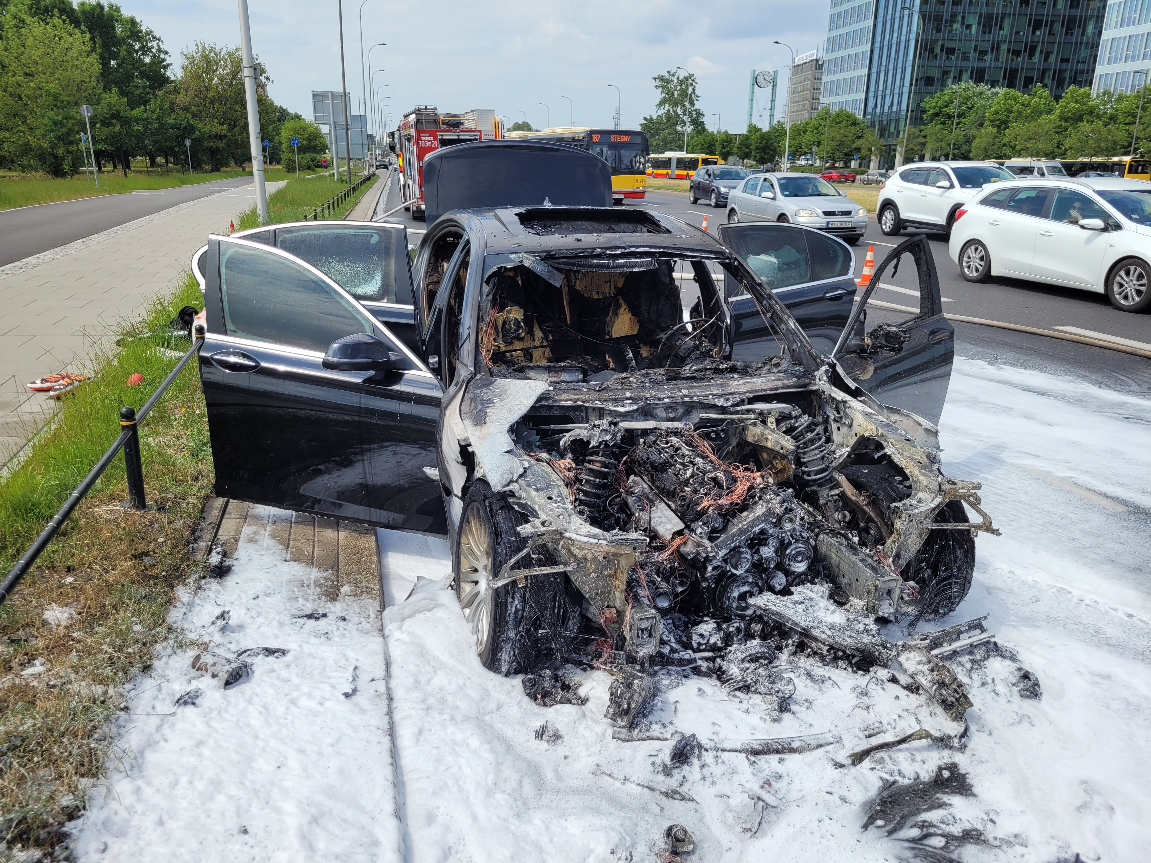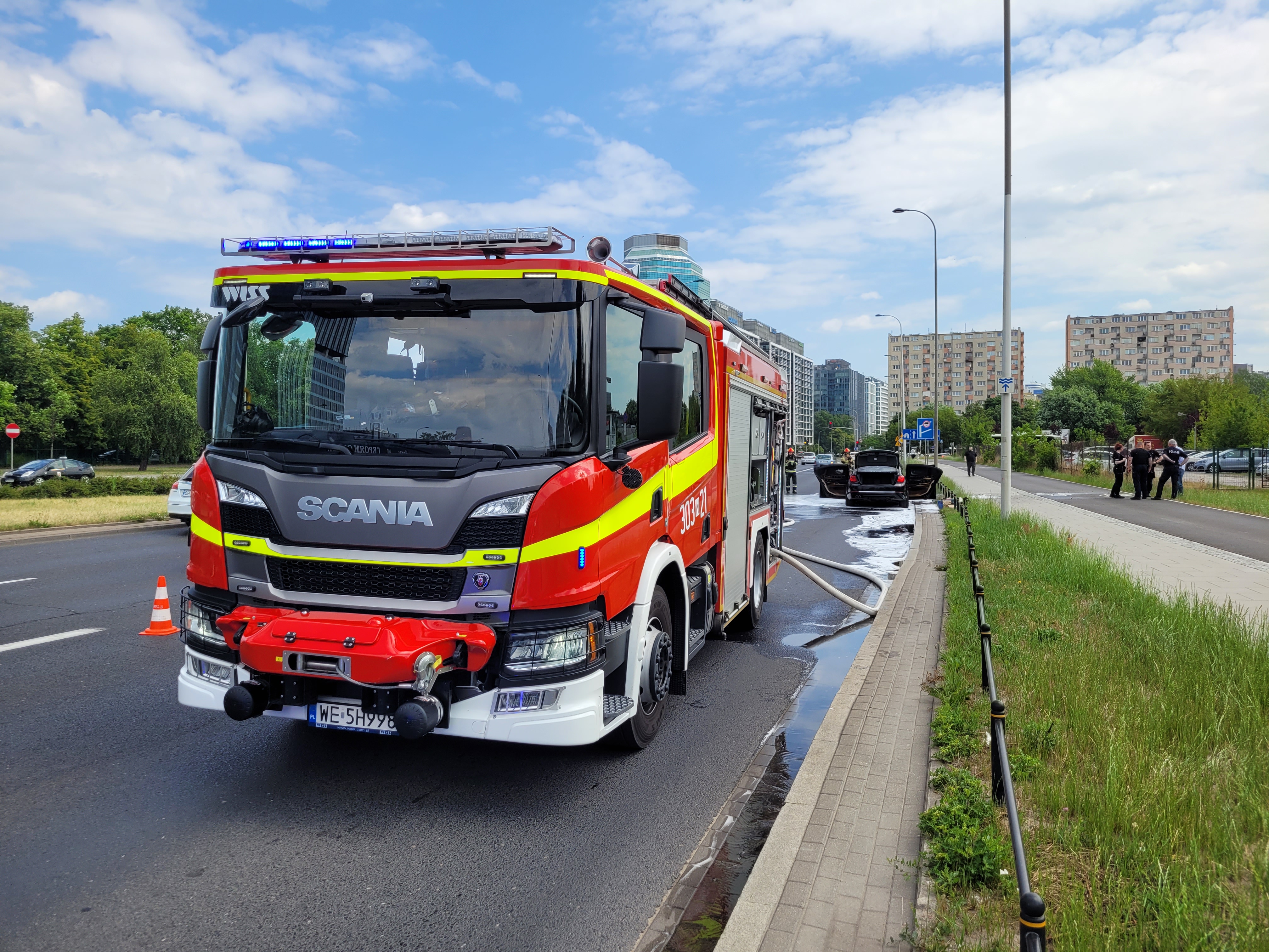 Pożary samochodów osobowych na Trasie Siekierkowskiej i w Alejach Jerozolimskich