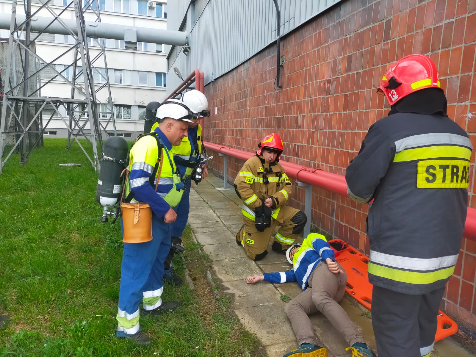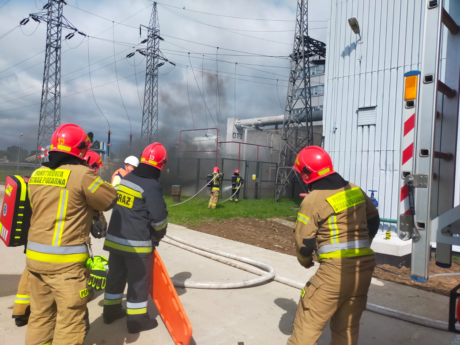 W dniu 16.05.2023 odbyły się ćwiczenia ratowniczo- gaśnicze na obiekcie Ciepłowni Kawęczyn. Ćwiczenia miały na celu zapoznanie się funkcjonariuszy oraz pracowników z zasadami prowadzenia akcji ratowniczo gaśniczej na terenie obiektu. Głównym założeniem był pożar transformatora w wyniku którego jedna osoba została poszkodowana. Podczas ćwiczeń utrwalono zasady postępowania w trakcie pożaru i występujących zagrożeń zarówno dla strażaków jak i pracowników zakładu. Dodatkowo zapoznano się z topografią, zabezpieczeniami przeciwpożarowymi oraz sposobami ewakuacji z obiektów na terenie ciepłowni.