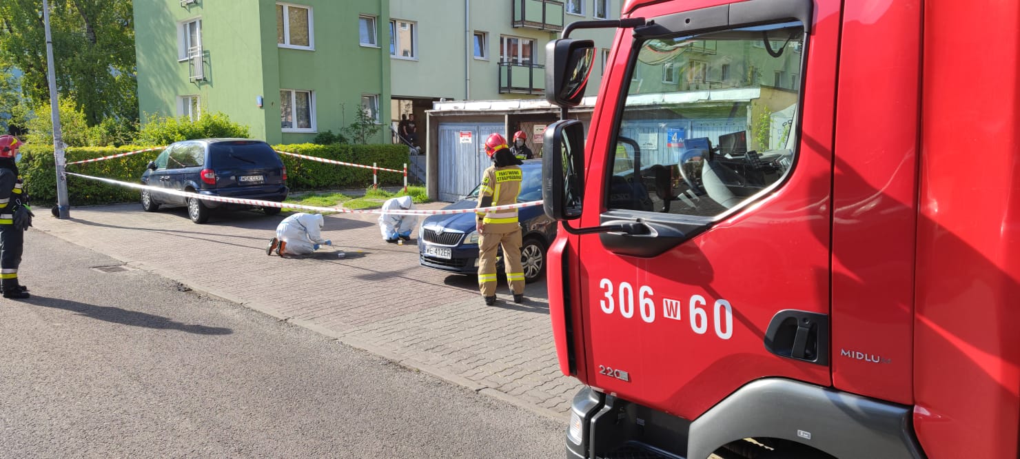Rozlana substancja na parkingu przy ul. Grenady 4A