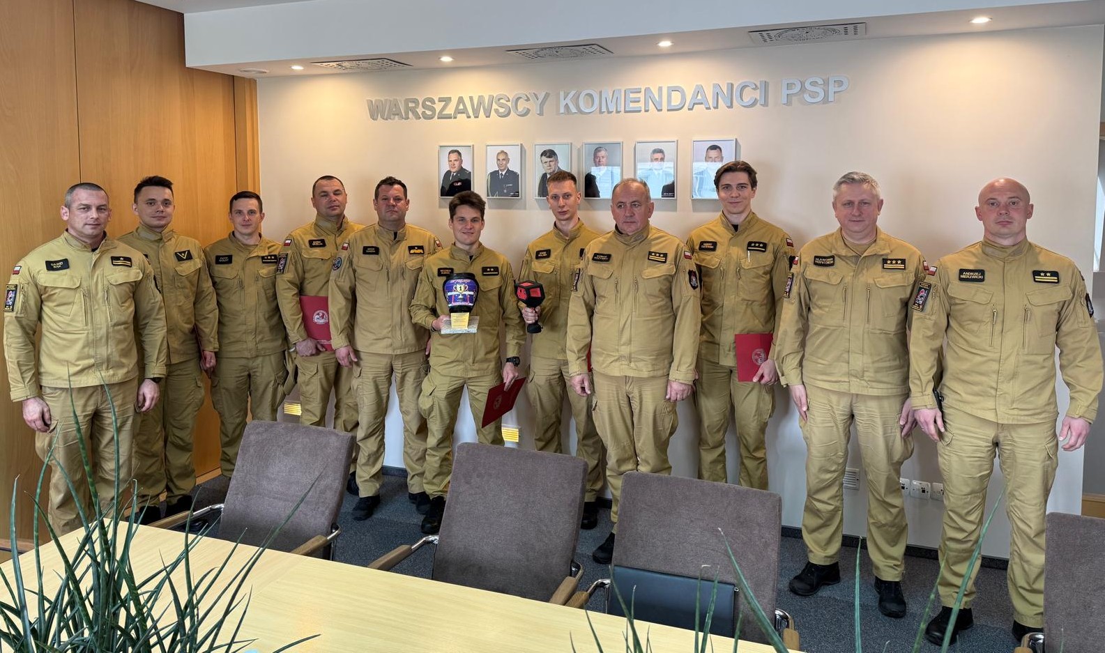 Dziś w siedzibie Komendy Miejskiej PSP m.st. Warszawy odbyło się wyjątkowe spotkanie, podczas którego Mazowiecki Komendant Wojewódzki PSP nadbryg. Artur Gonera oraz Komendant Miejski PSP st. bryg. Roman Krzywiec wraz z zastępcą st. bryg. Sławomirem Sierpatowskim uhonorowali strażaków z JRG 5 i 9, którzy zajęli I miejsce w II Mistrzostwach Polski Zespołów Asekuracyjnych PSP.