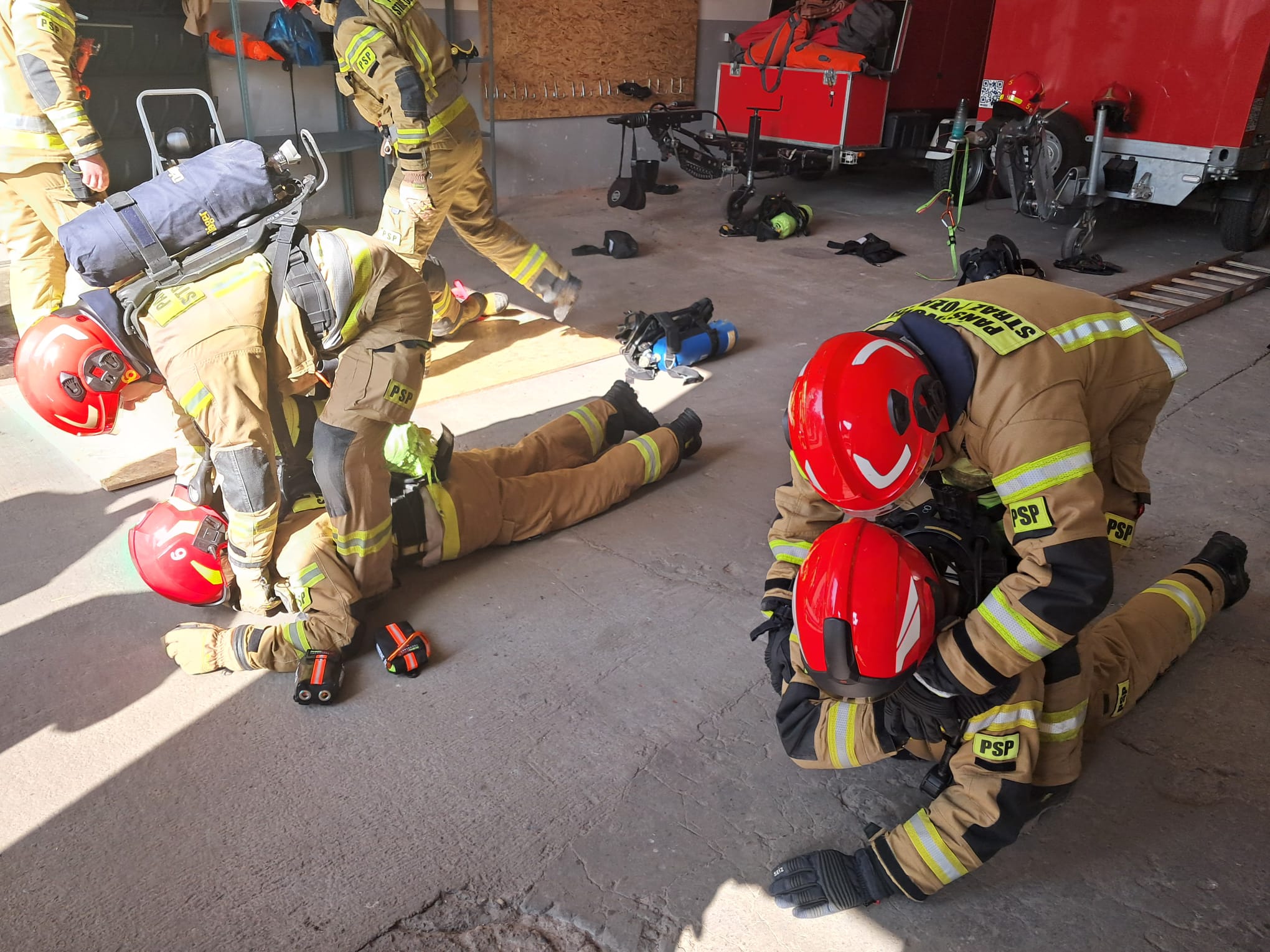 - Ewakuacja z kondygnacji podziemnych: Strażacy ćwiczyli transport poszkodowanego kolegi