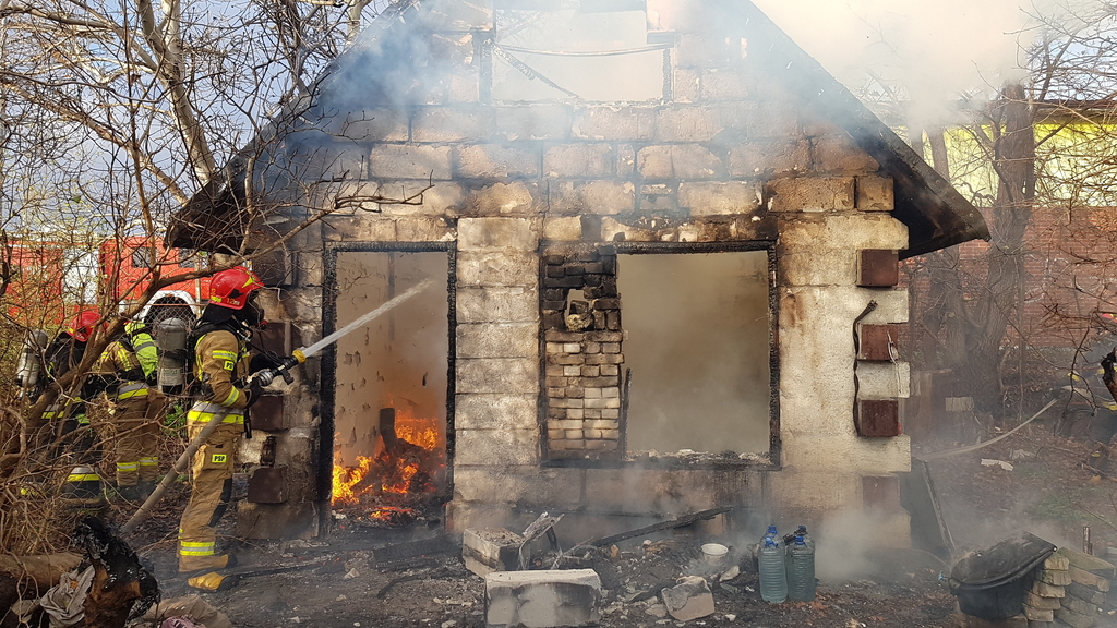 W momencie przybycia na miejsce zastępów gaśniczych płonął cały budynek. Działania ratowników polegały na zabezpieczeniu terenu akcji i podaniu dwóch prądów wody w natarciu. Z uwagi na mocno rozwinięty pożar i mało stabilną konstrukcję budynku nie było możliwości szybkiego przeszukania domu. Po przygaszeniu pożaru ratownicy znaleźli wewnątrz zwęglone zwłoki mężczyzny. Na koniec budynek został częściowo rozebrany, tak by nie stwarzał dodatkowego zagrożenia dla osób wykonujących swoje czynności operacyjne na terenie pogorzeliska.