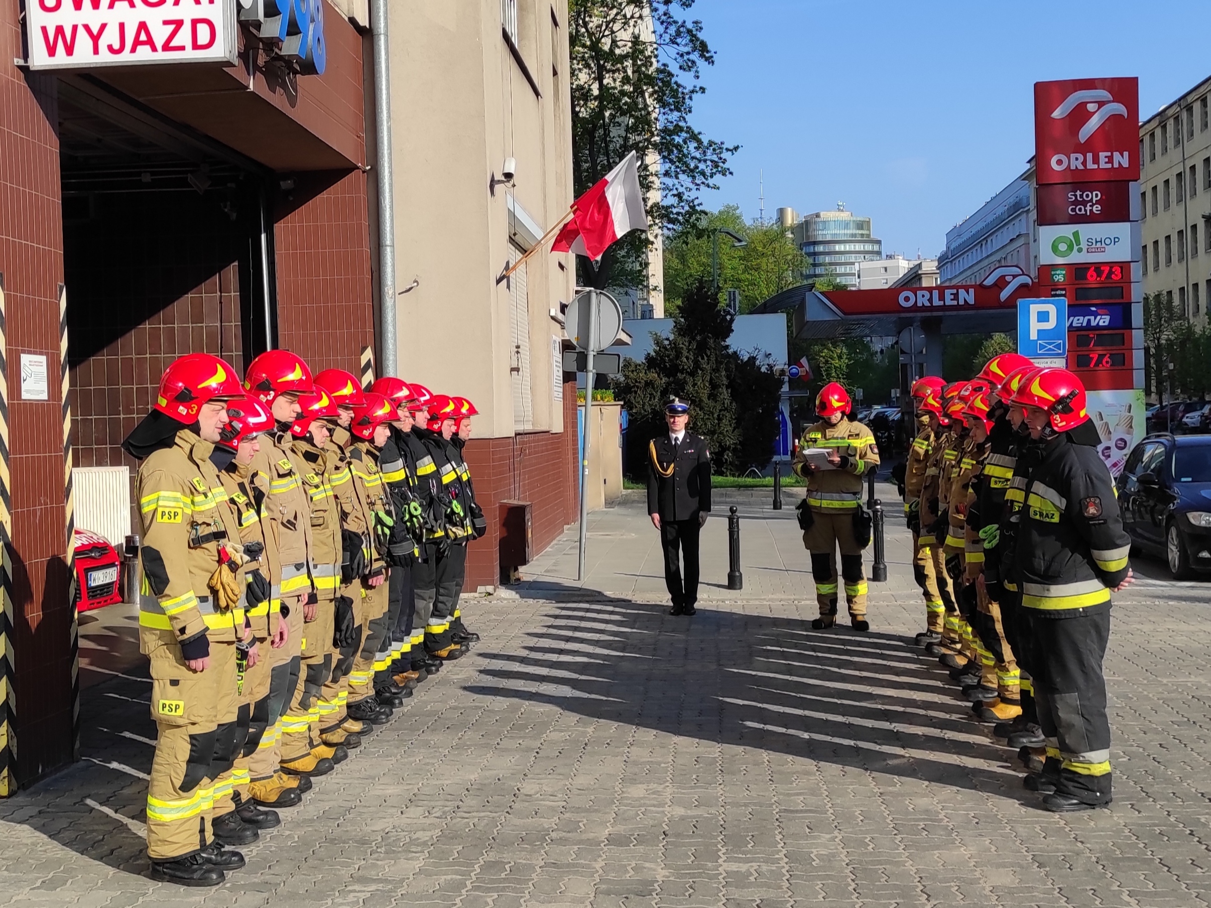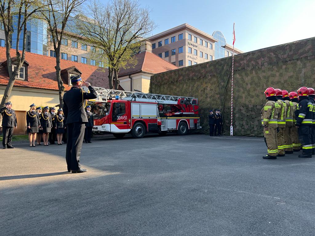 Uroczyste obchody Dnia Flagi Rzeczypospolitej Polskiej w Komendzie Miejskiej PSP m. st. Warszawy