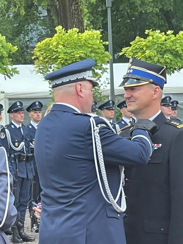 Wszystkim funkcjonariuszom i pracownikom cywilnym tutejszej komendy życzymy wielu sukcesów, awansów, powodzenia w życiu osobistym i zawodowym oraz jak najwięcej satysfakcji ze służby na rzecz lokalnej społeczności, a odznaczonym, wyróżnionym i awansowanym serdecznie gratulujemy. Państwową Straż Pożarną na uroczystościach reprezentował Mazowiecki Komendant Wojewódzki PSP - nadbryg. Jarosław Nowosielski oraz Komendant Miejski PSP m.st. Warszawy - st. bryg. Leszek Smuniewski, który w trakcie uroczystości otrzymał Brązowy Medal za Zasługi dla Policji z rąk nadinspektora Pawła Dzierżaka – Komendanta Stołecznego Policji.