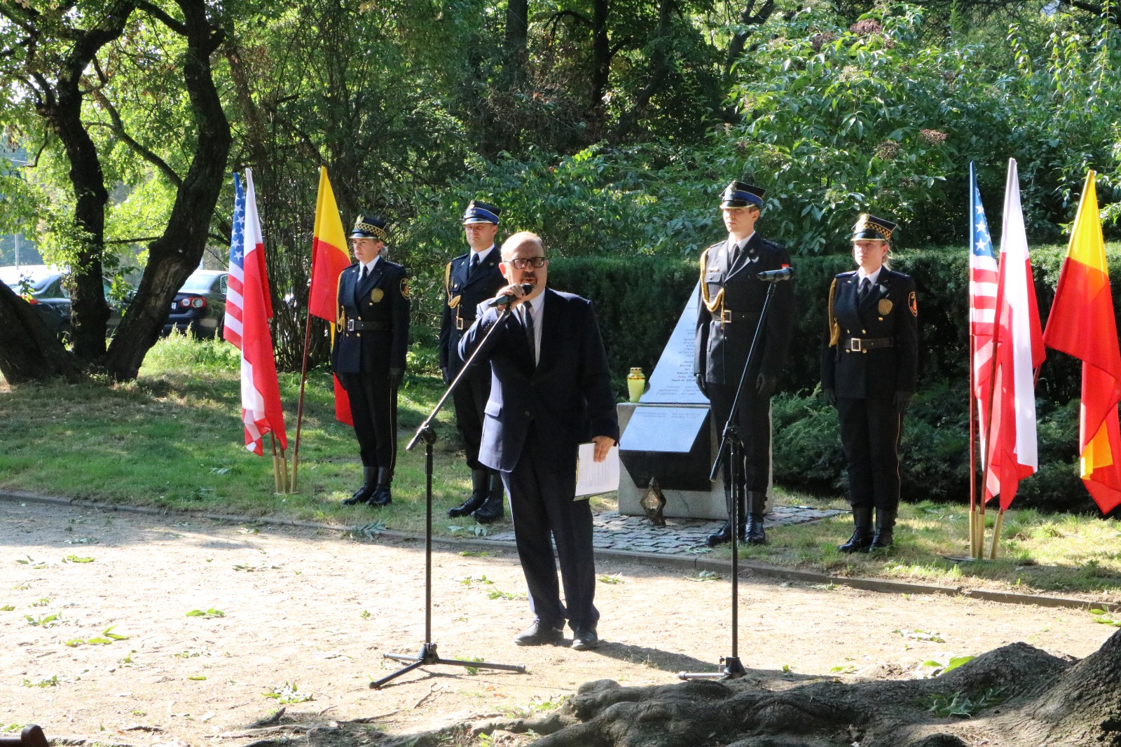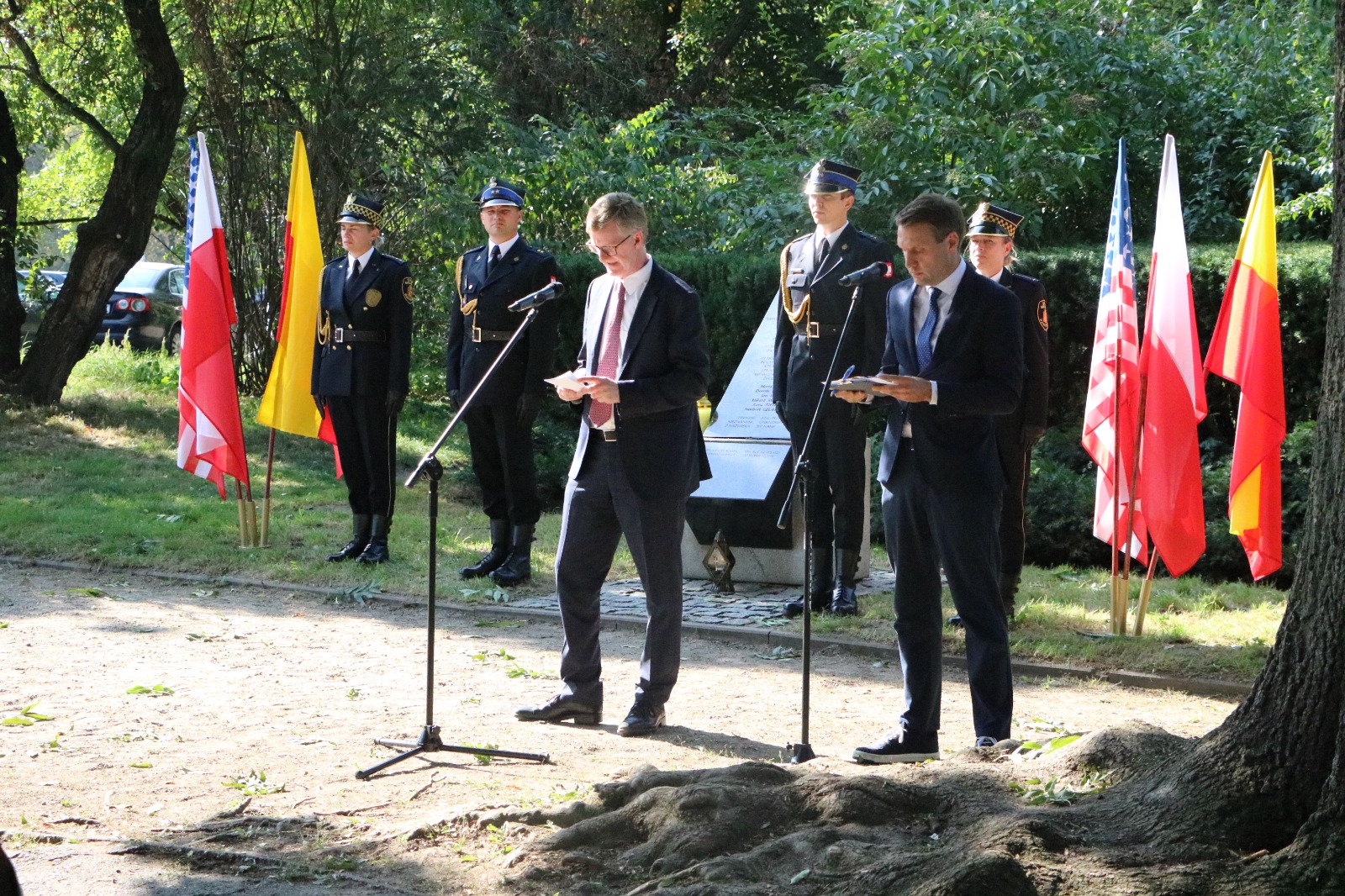 Uroczyste złożenie wieńca przy Pomniku pamięci Polaków Ofiar Ataku Terrorystycznego w Nowym Jorku