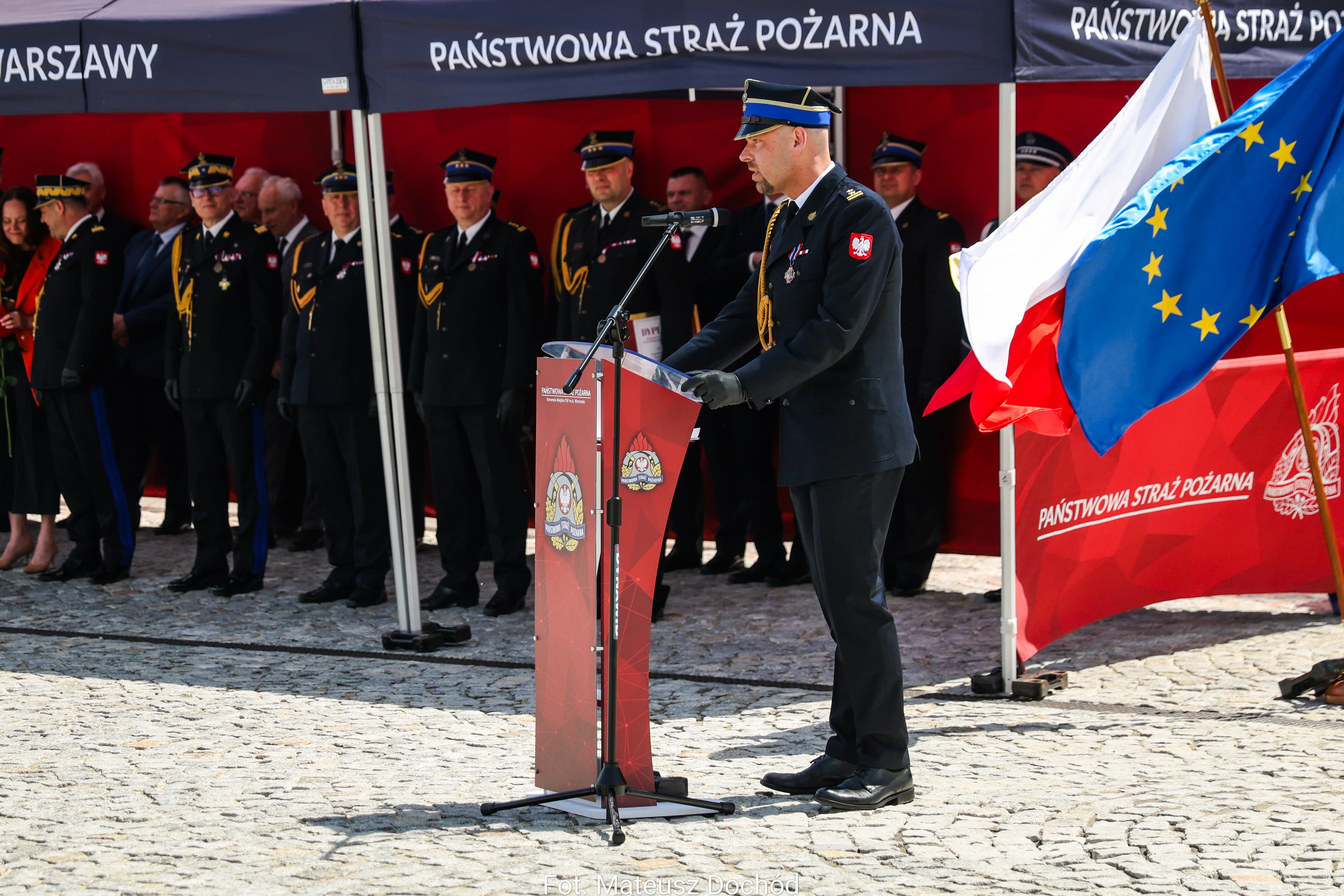 Uroczysty apel rozpoczął się złożeniem meldunku Zastępcy Komendanta Głównego PSP nadbryg. Pawłowi Frysztakowi. Następnie wprowadzono sztandar Komendy Miejskiej PSP m.st. Warszawy oraz odegrano hymn narodowy.