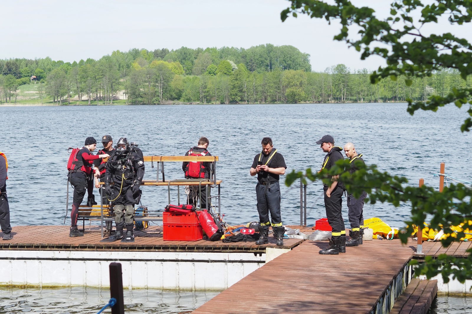 Specjalistyczna Grupa Ratownictwa Wodno-Nurkowego „Warszawa 5” z JRG nr 1 od 17 maja bierze udział w warsztatach doskonalących umiejętności prowadzenia prac podwodnych dla strażaków z terenu woj. mazowieckiego organizowanych przez Ośrodek Szkolenia Komendy Wojewódzkiej Państwowej Straży Pożarnej w Warszawie. Zajęcia teoretyczne i praktyczne realizowane są zgodnie z planem warsztatów podczas 6 dniowych zgrupowań przez kolejne 5 tygodni na terenie Poligonu Szkoleniowego w Kręsku nad Jeziorem Wulpińskim.