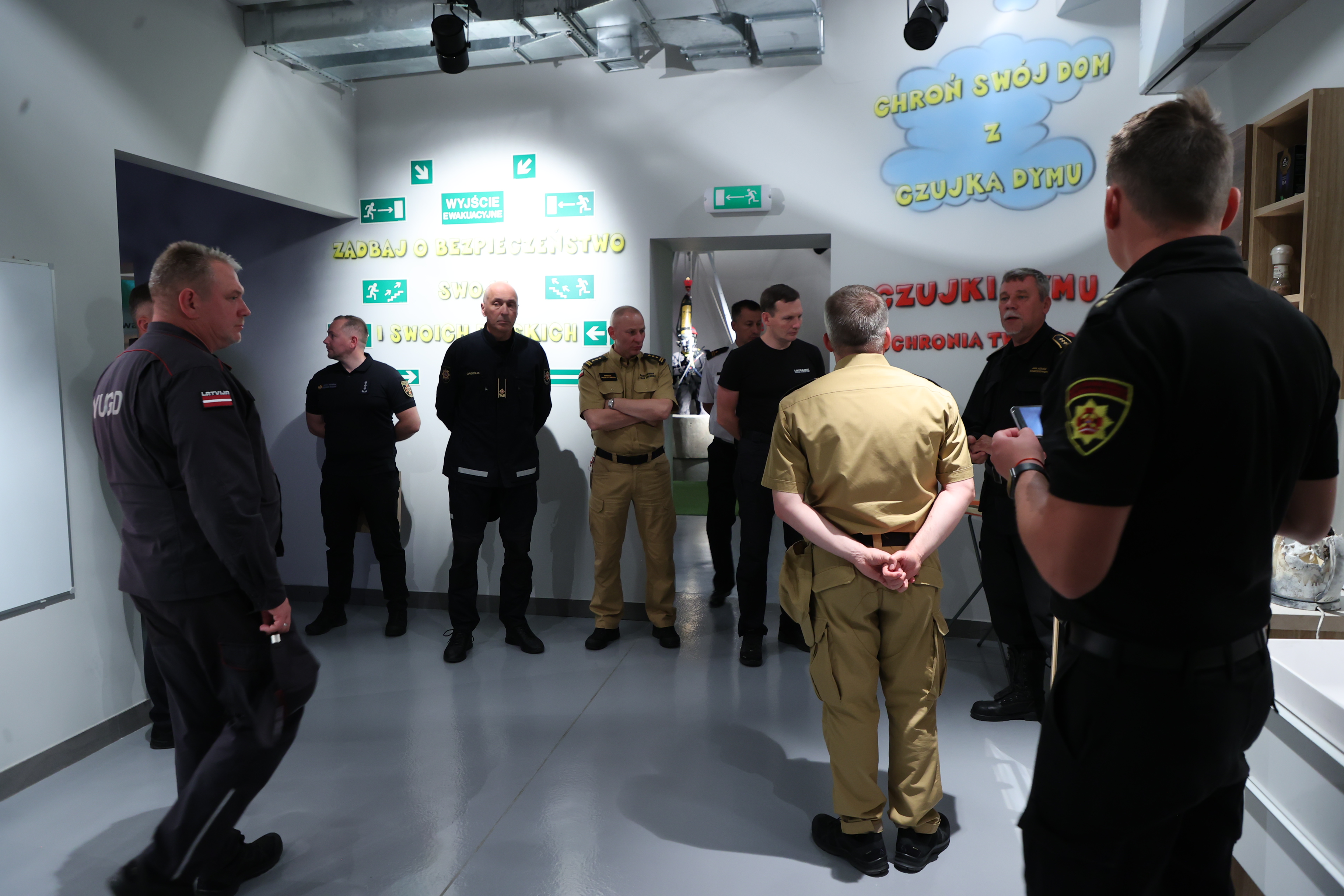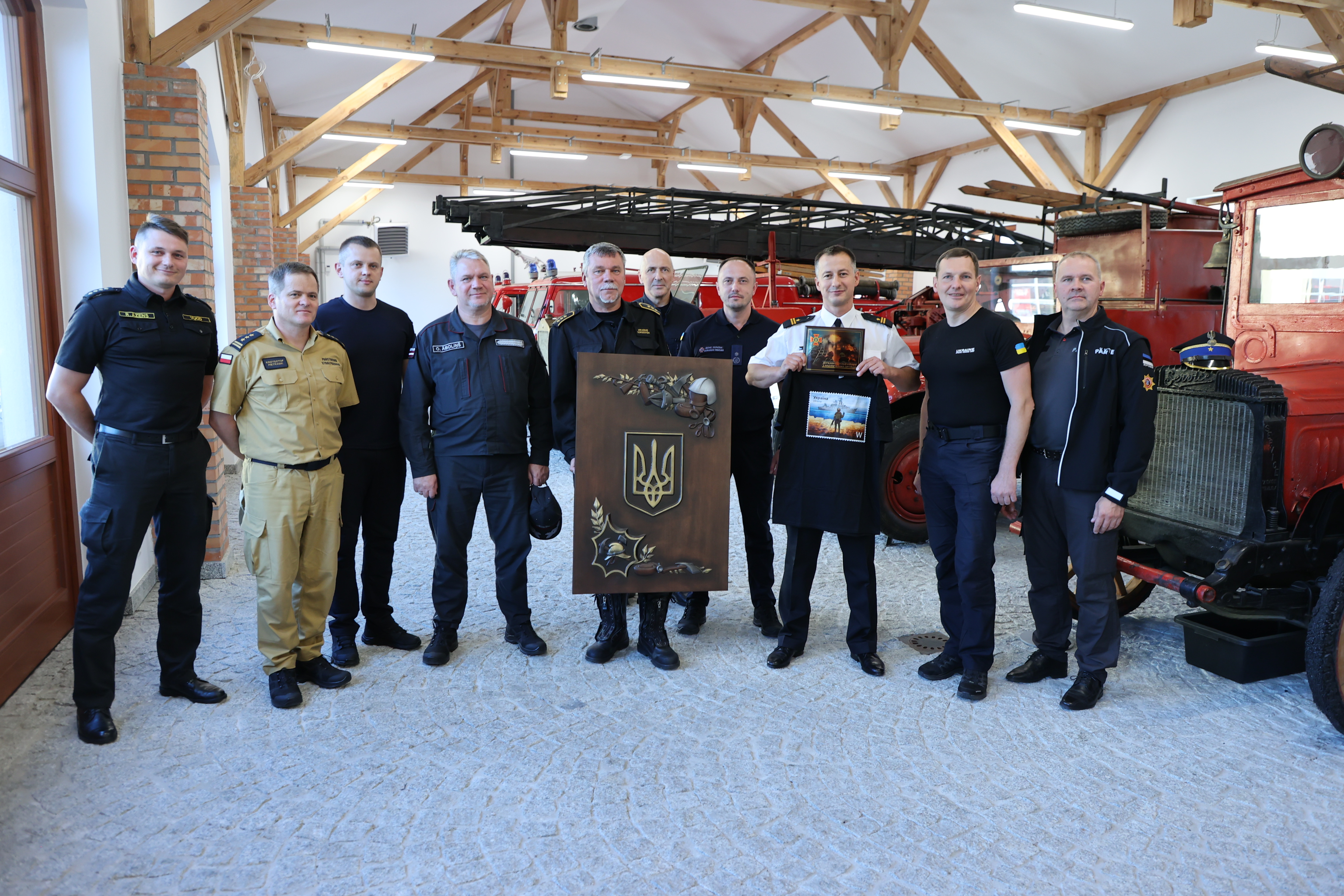 Wiceminister spraw wewnętrznych Ukrainy Pan Yevhenii Yenin wraz z Sergiejem Krukiem Szefem Państwowej Służby Ukrainy ds. sytuacji nadzwyczajnych, Szefem Południowego Centrum Ratowniczego Panem Margo Klaos, Szefem Państwowej i Ratowniczej Republiki Łotwy gen. Oskars Abolins oraz Dyrektorem Departamentu Straży Pożarnej i Ratownictwa w MSW Republiki Litewskiej gen. Saulius Greicius w towarzystwie dyrektorów Biura Komendanta Głównego oraz Komendanta Miejskiego PSP m.st. Warszawy odwiedzili Centrum Edukacji i Historii Warszawskiej Straży Pożarnej.