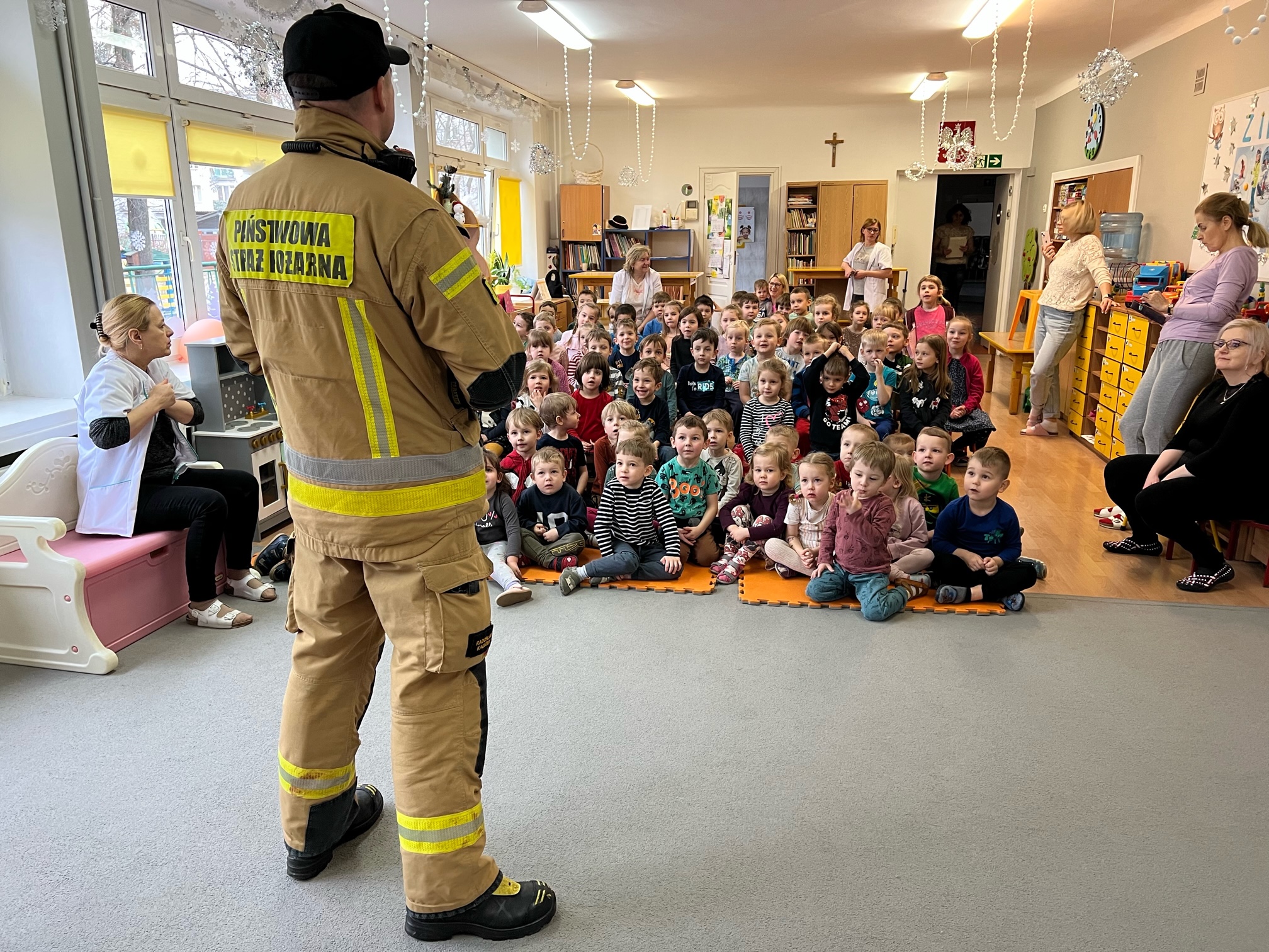 W dniu 13 lutego 2023 roku funkcjonariusze Jednostki Ratowniczo-Gaśniczej nr 5 Państwowej Straży Pożarnej w Warszawie spotkali się z dziećmi z Przedszkola nr 169 przy ul. Namysłowska 11 w Warszawie. Podczas spotkania funkcjonariusze opowiedzieli o swojej pracy, czym zajmuje się Straż Pożarna i z jakimi niebezpieczeństwami muszą się zmagać podczas służby. Zaprezentowali umundurowanie specjalne, wyposażenie osobiste strażaka oraz podstawowy sprzęt z jakim pracują na co dzień.