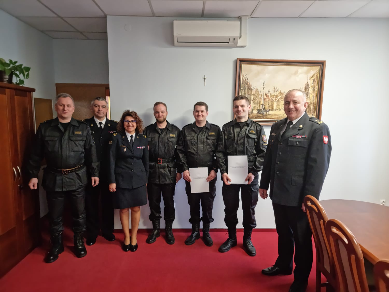 Wręczenie dokumentów skrócenia służby przygotowawczej trzem strażakom Wydziału Kontrolno-Rozpoznawczego