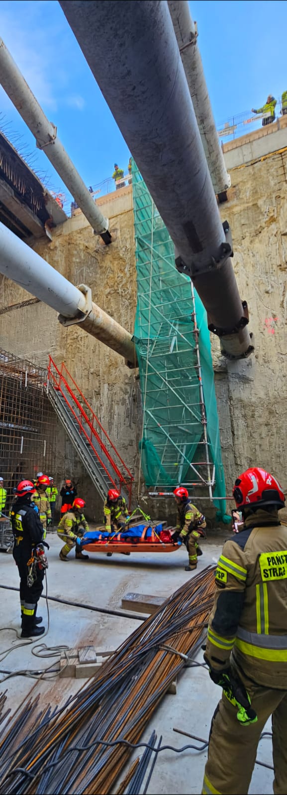 W dniu 17.02.2025r. o godzinie 13:45 do stanowiska kierowania KM PSP m.st. Warszawy wpłynęło zgłoszenie o upadku mężczyzny z drabiny na terenie budowy przy ul. Siennej 60. Do zdarzenia doszło na poziomie -3. Po dojeździe na miejsce JRG 4 KDR zastał osobę poszkodowaną, której została już udzielona pomoc przez obecnych na miejscu Ratowników Medycznych. Z powodu braku możliwości ewakuacji poszkodowanego schodami, zadysponowana została Specjalistyczna Grupa Ratownictwa Wysokościowego z JRG 7. Przy pomocy technik alpinistycznych poszkodowany został przetransportowany na powierzchnię i przekazany Zespołowi Ratownictwa Medycznego.