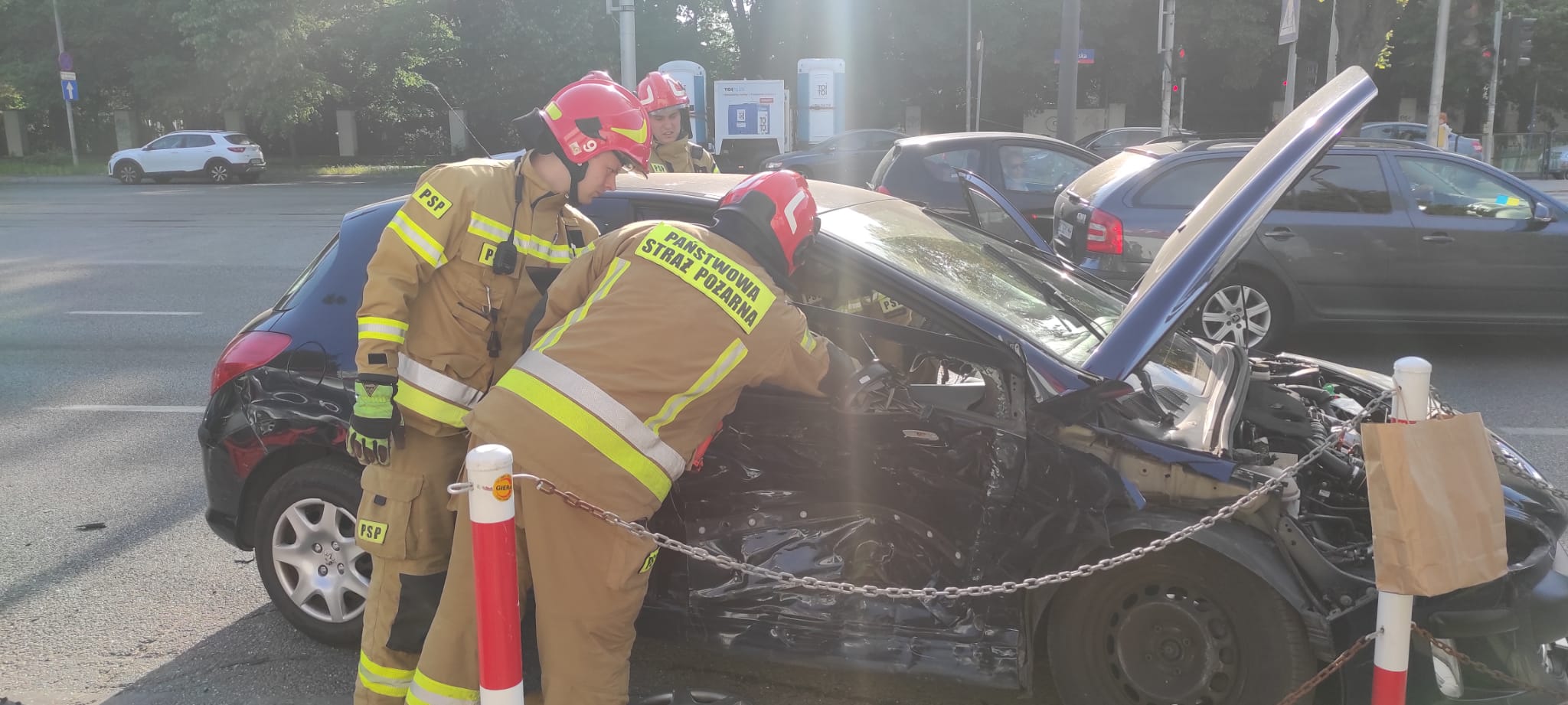 Wypadek samochodów osobowych na skrzyżowaniu ul. Puławskiej i ul. Antoniego Malczewskiego.