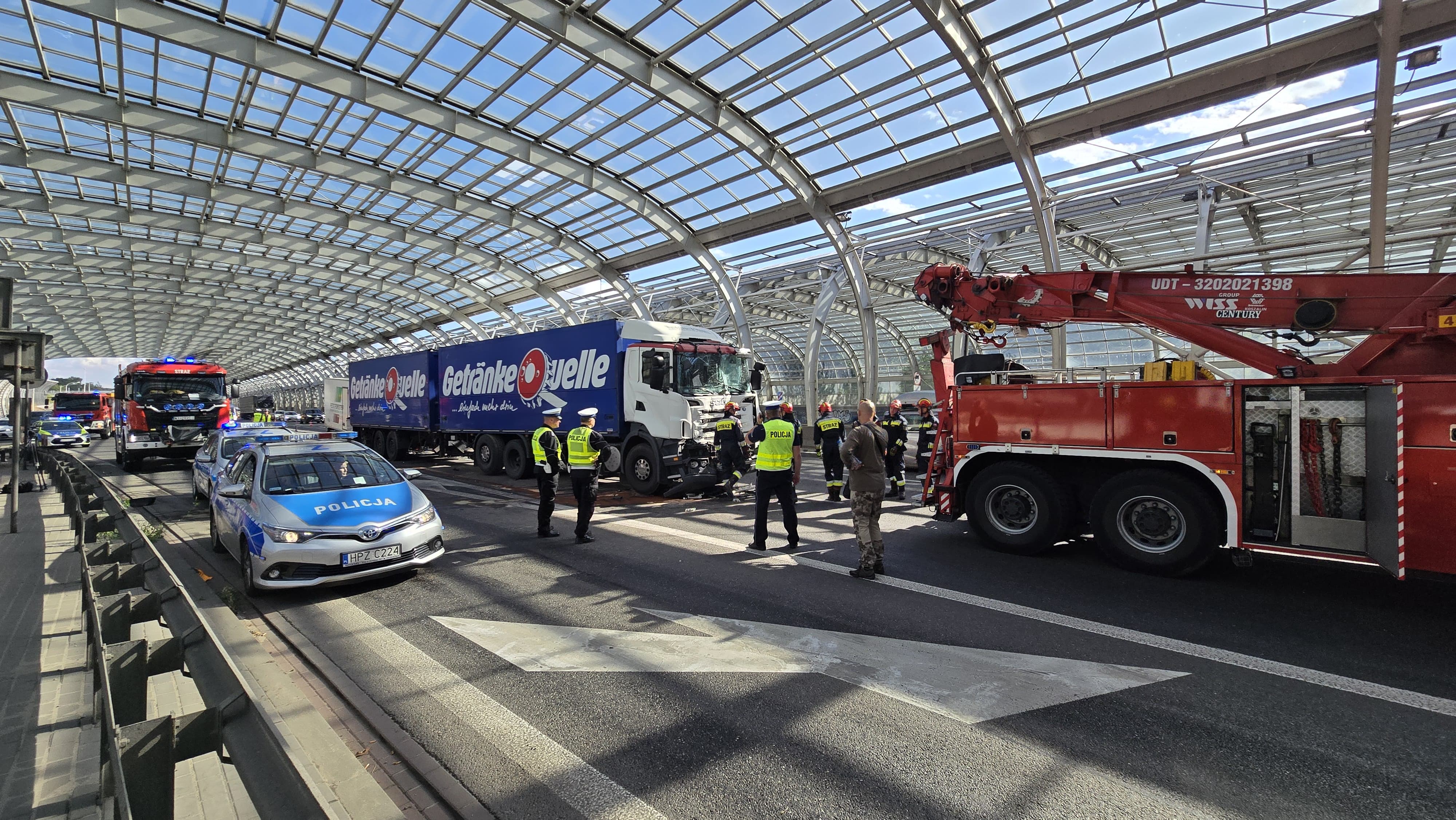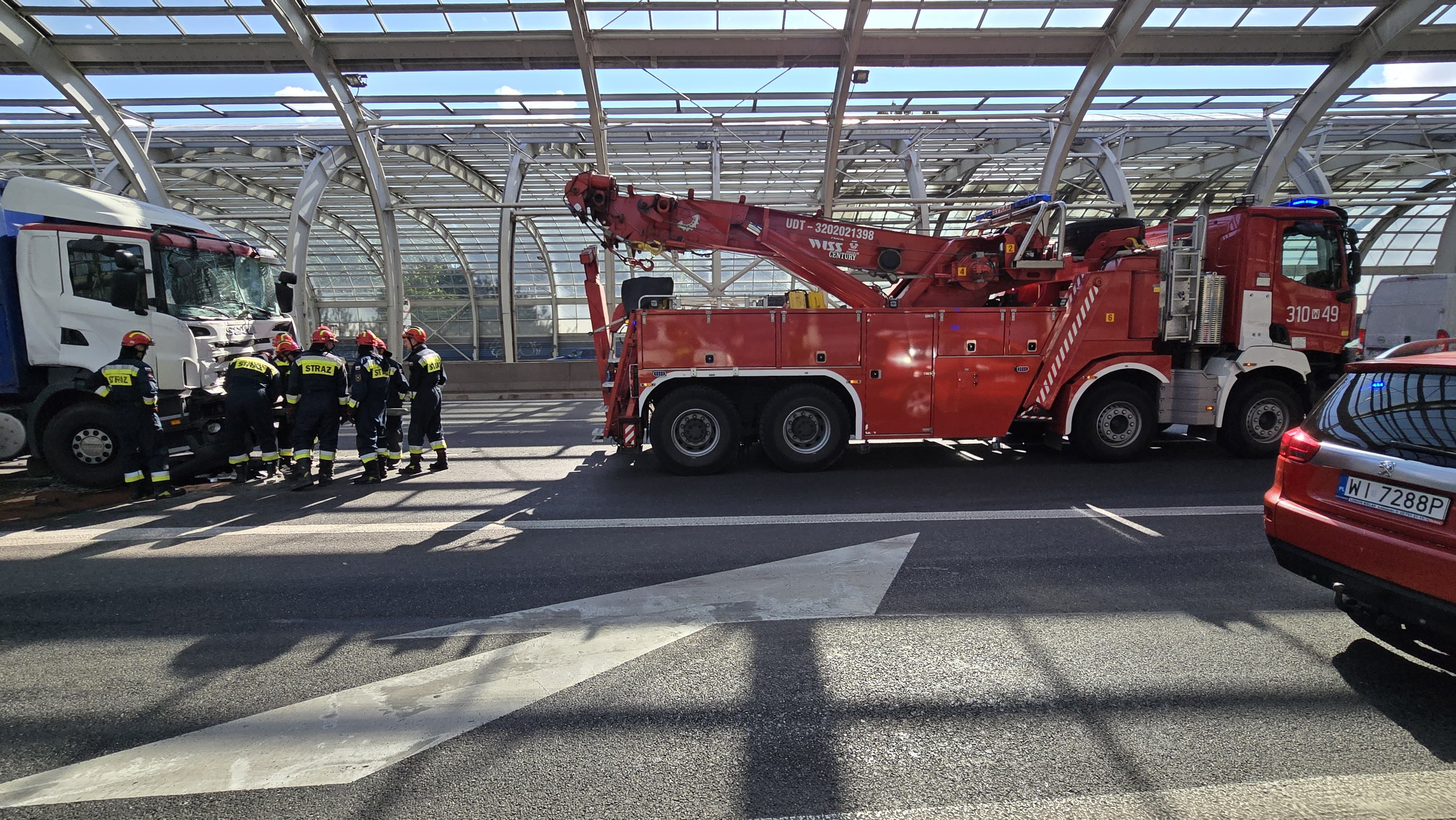 Wypadek trzech „ciężarówek” na trasie S8 w Warszawie