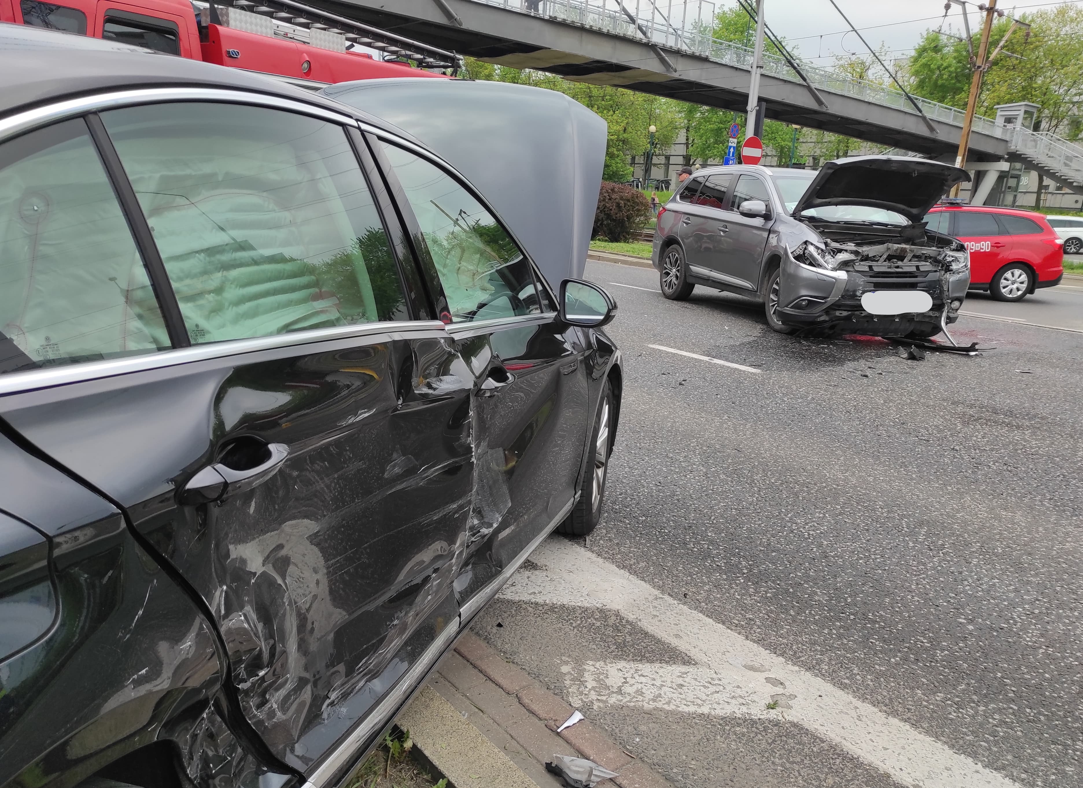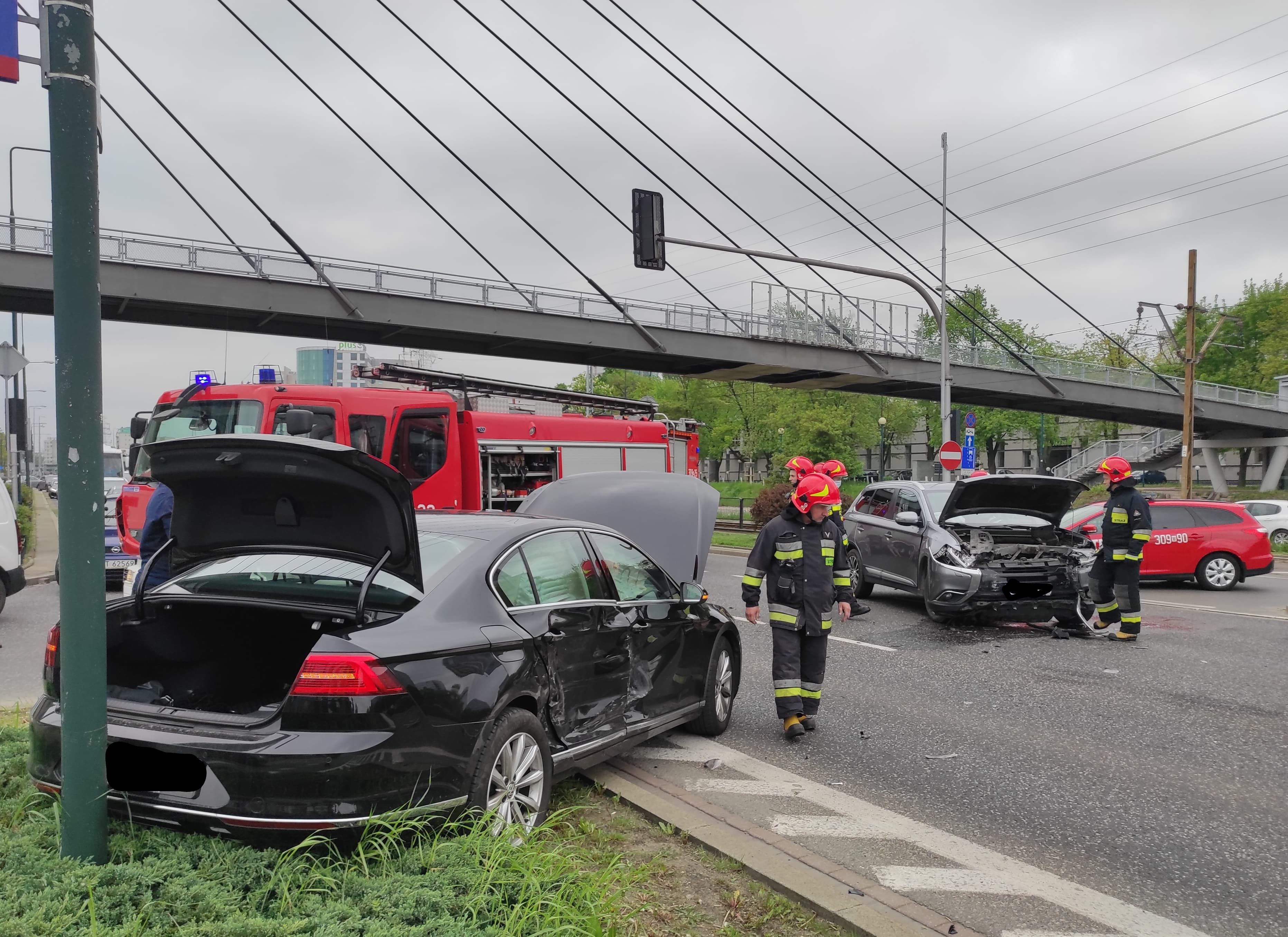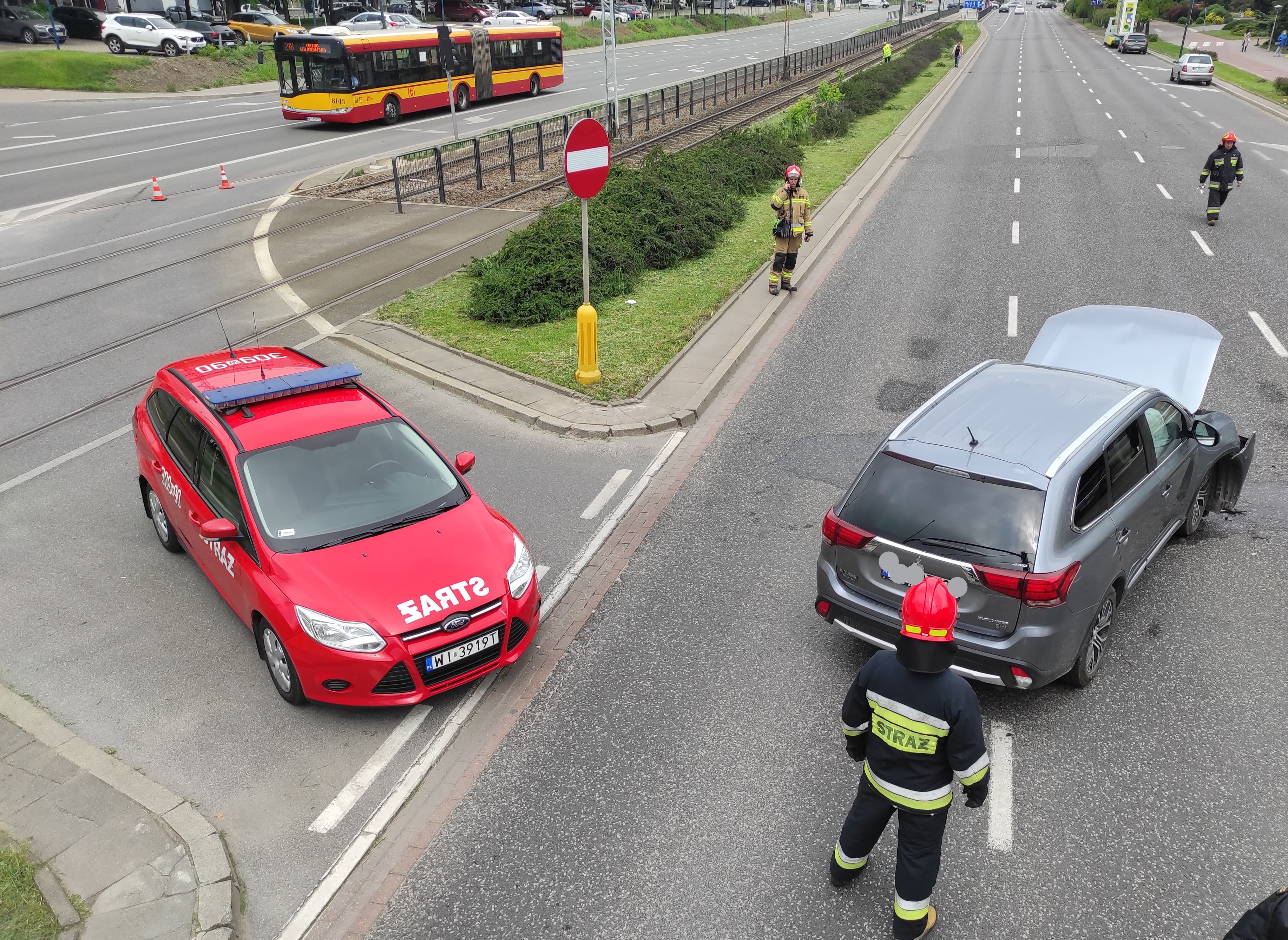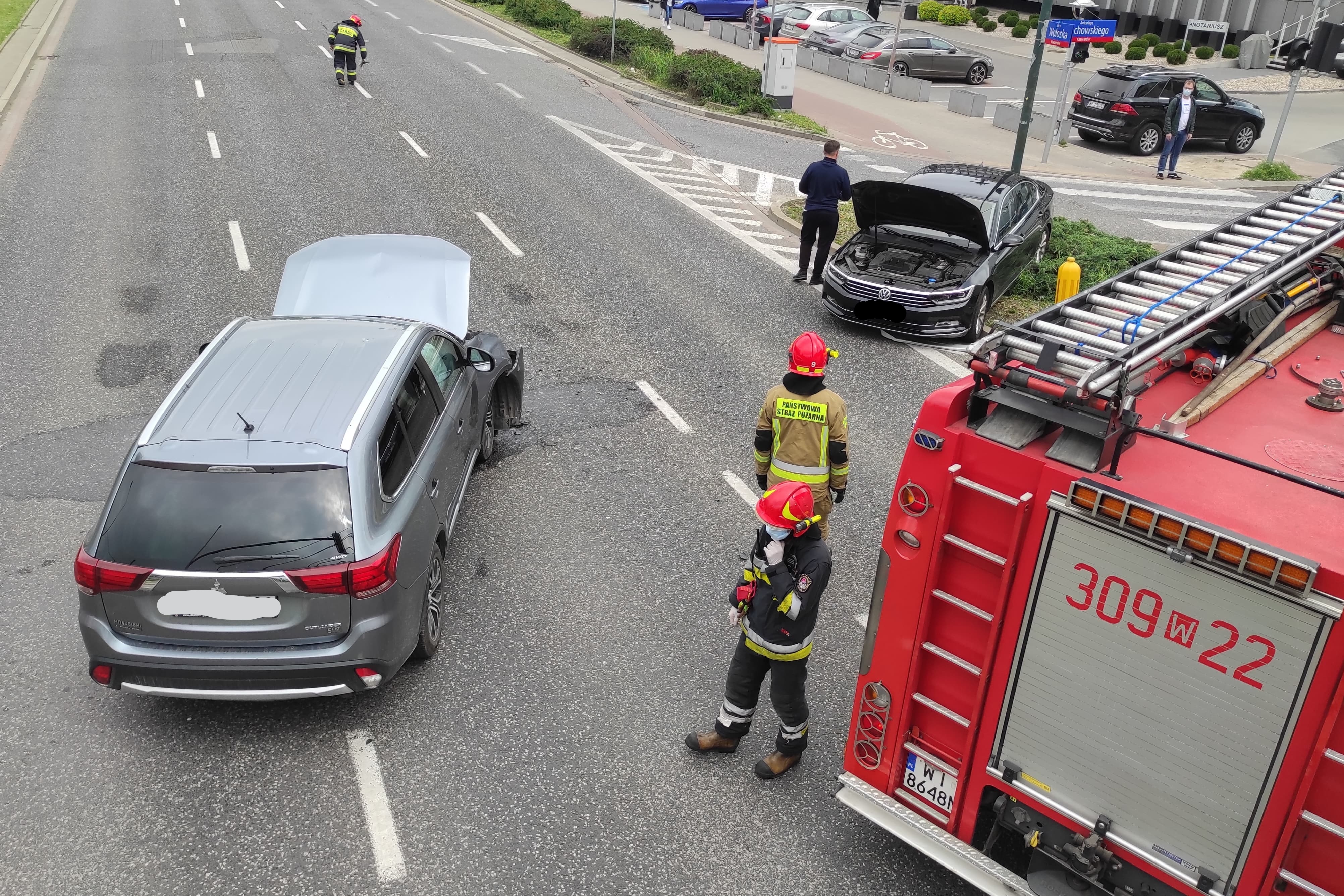 Po dojeździe na miejsce zdarzenia zastano, dwa uszkodzone samochody osobowe blokujące trzy pasy ulicy Wołoskiej. Wszyscy uczestnicy wypadku znajdowali się poza pojazdami, jedna z osób oskarżała się na ból nogi, po przebadaniu przez ZRM pozostała na miejscu zdarzenia. Działania zastępu polegały na zabezpieczeniu miejsca zdarzenia oraz odłączeniu napięcia w uszkodzonych pojazdach. Ruch na skrzyżowaniu przez kilkanaście minut był całkowicie zamknięty. Po wykonaniu czynności przez będący na miejscu Patrol Policji pojazdy zostały ustawione na prawym skrajnym pasie jezdni. W działaniach które trwały 40 minut brało udział 10 ratowników.