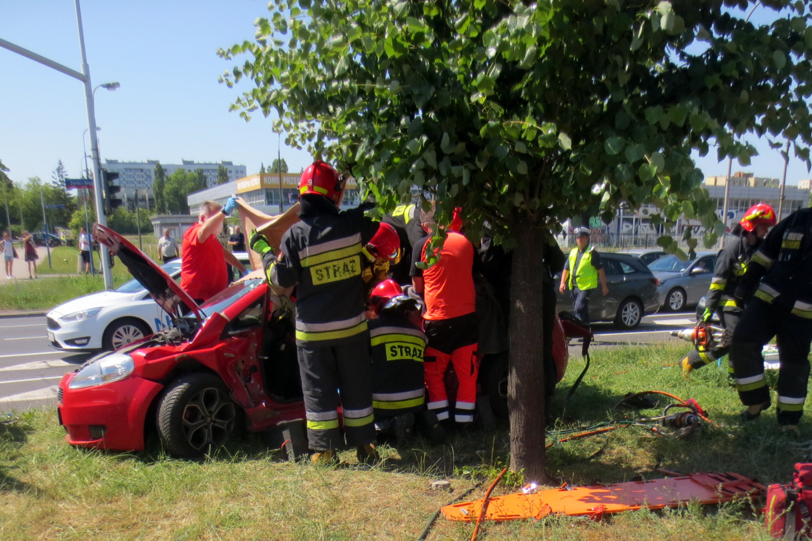 W dniu 21 czerwca 2021 r. o godzinie 14:10 do Stanowiska Kierowania Komendanta Miejskiego PSP w Warszawie wpłynęło zgłoszenie o zdarzeniu drogowym na skrzyżowaniu ul. Żwirki i Wigury z ul. 1 Sierpnia. Do zdarzenia zadysponowano zastępy z JRG 9: GCBA 5/32/2,5, GBA-Rt 2,5/25/2,5 oraz SLRR.