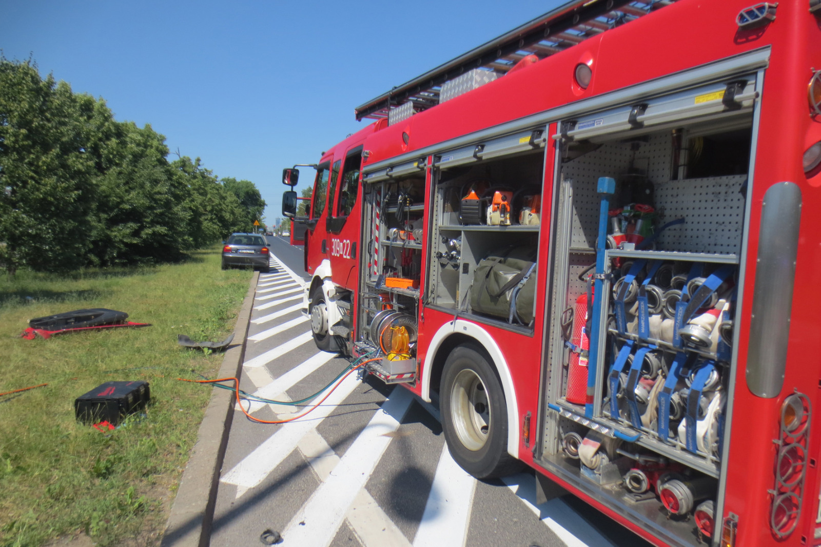 Dalsze czynności ratownicze polegały na sorpcji rozlanych płynów eksploatacyjnych oraz zabezpieczeniu miejsca akcji.
