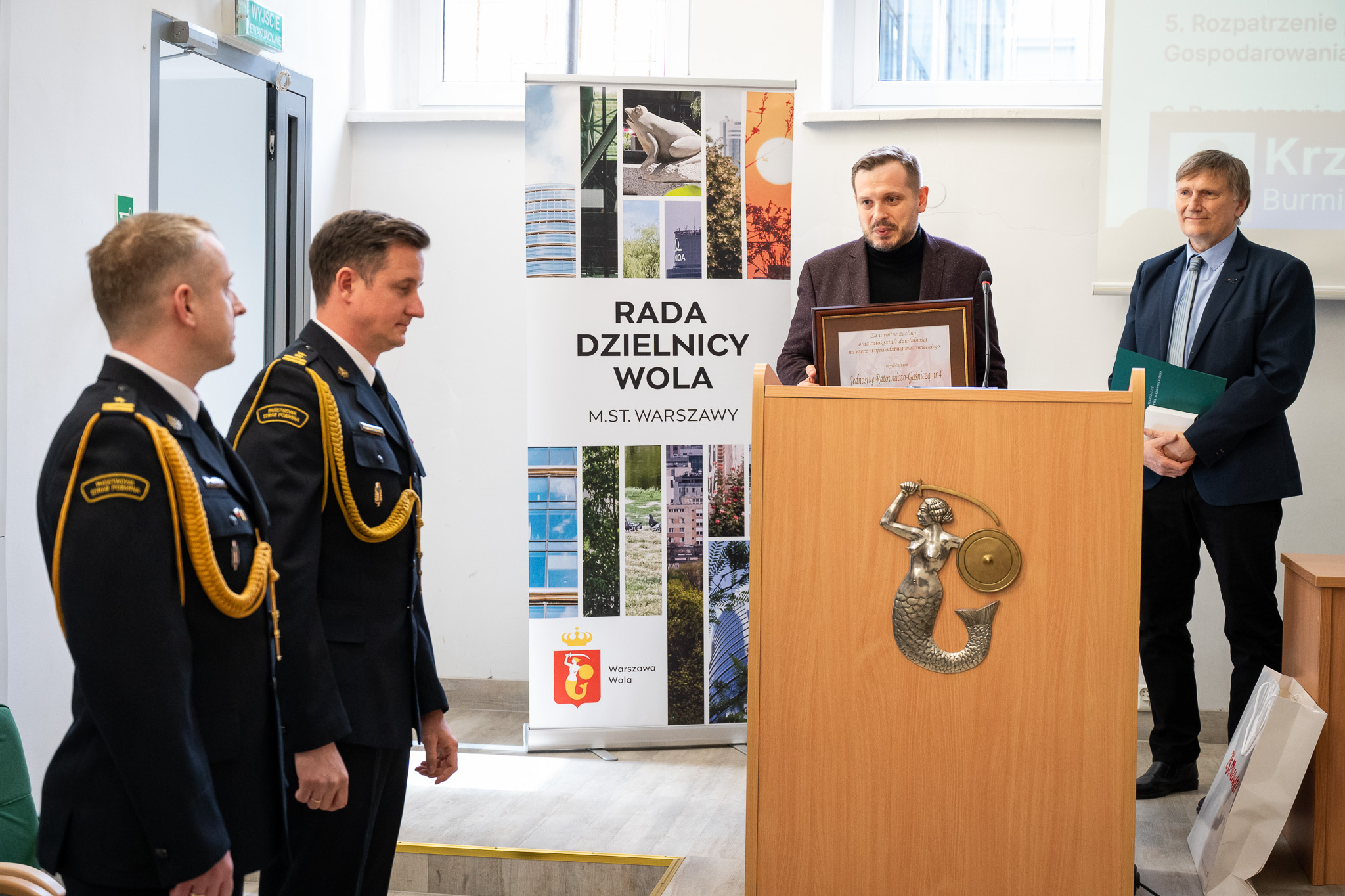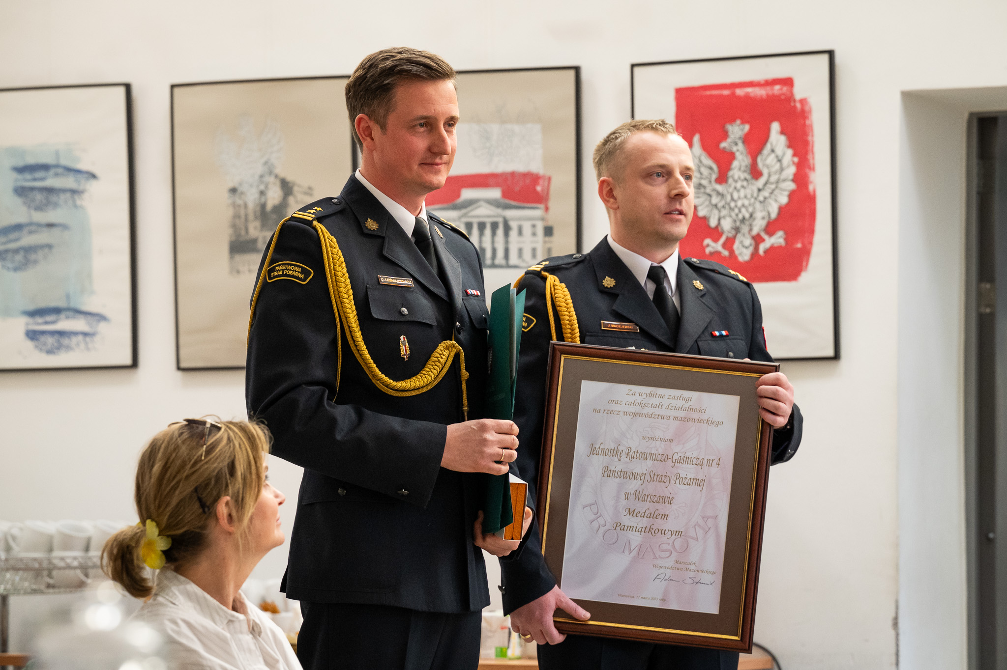 Tak zaszczytne wyróżnienie zostało odebrane przez Dowódców - bryg. Dominika Leśniakiewicza oraz mł. bryg. Janusza Maciejewskiego w imieniu strażaków z Jednostki Ratowniczo Gaśniczej nr 4.
