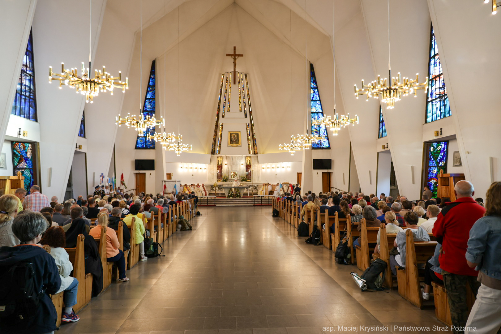 Mszę Świętą w intencji pątników celebrował bp Romuald Kamiński, który pobłogosławił uczestników pielgrzymki, łączącej w swoich szeregach strażaków zawodowych, ochotników i ich rodziny.