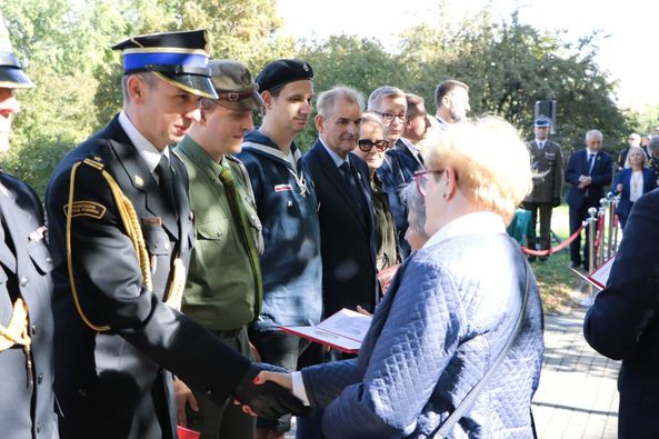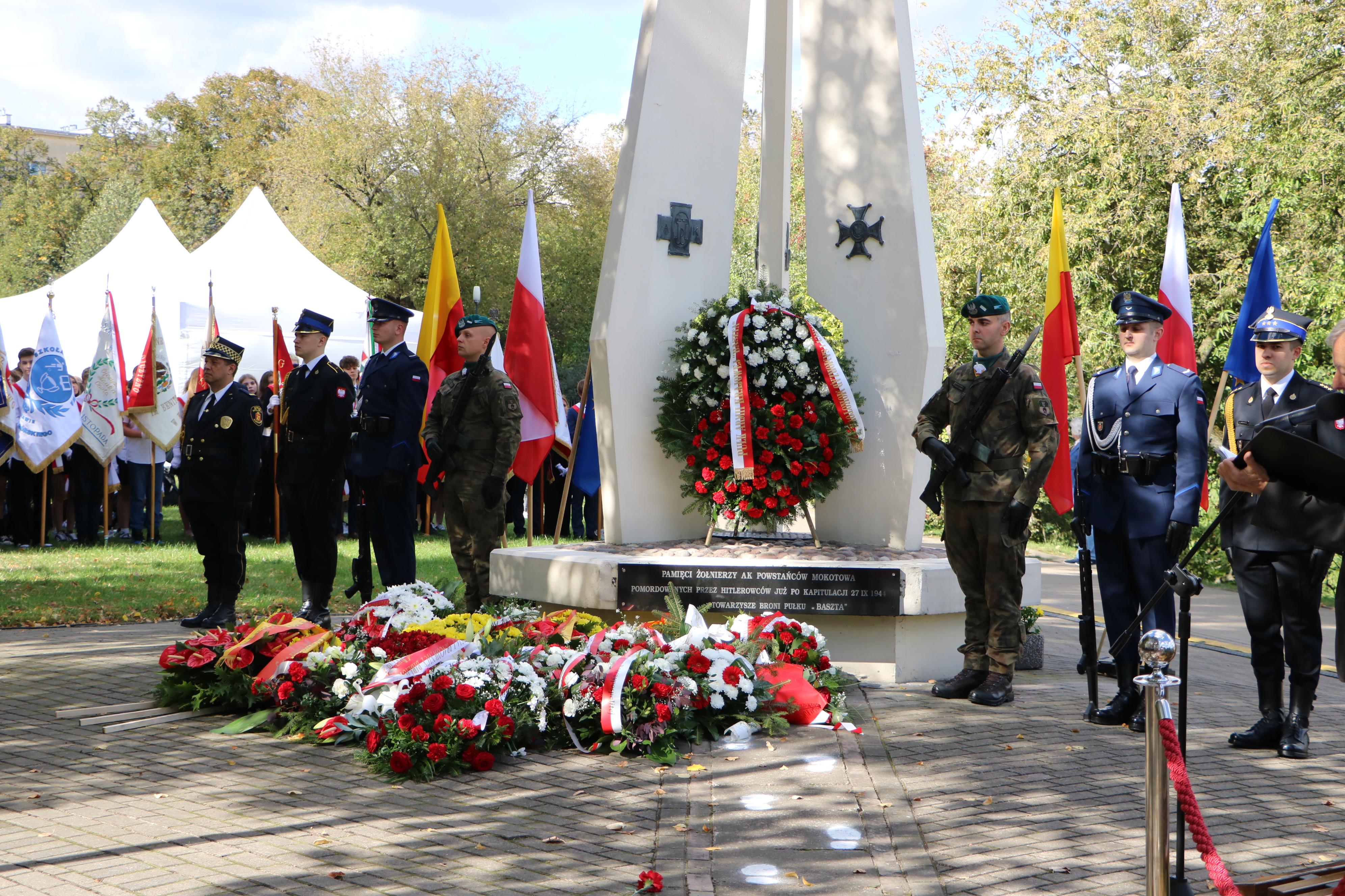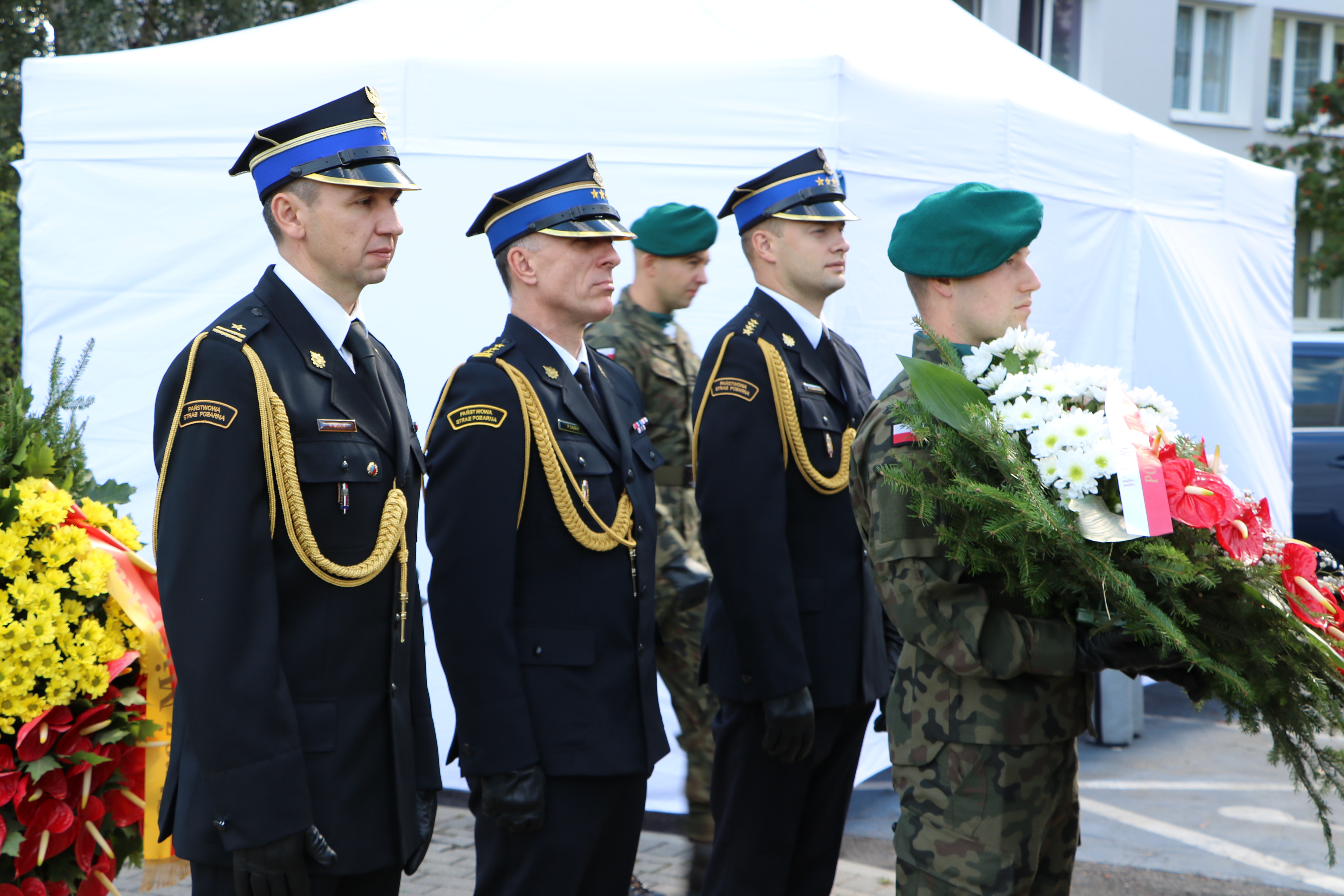 W uroczystości wieńczącej obchody 2.10.2024 udział wzięli oraz w imieniu PSP złożyli wieniec: Zastępca Mazowieckiego Komendanta Wojewódzkiego st. bryg. Piotr Gąska oraz Zastępca Komendanta Miejskiego PSP m.st. Warszawy bryg. Michał Płachta.